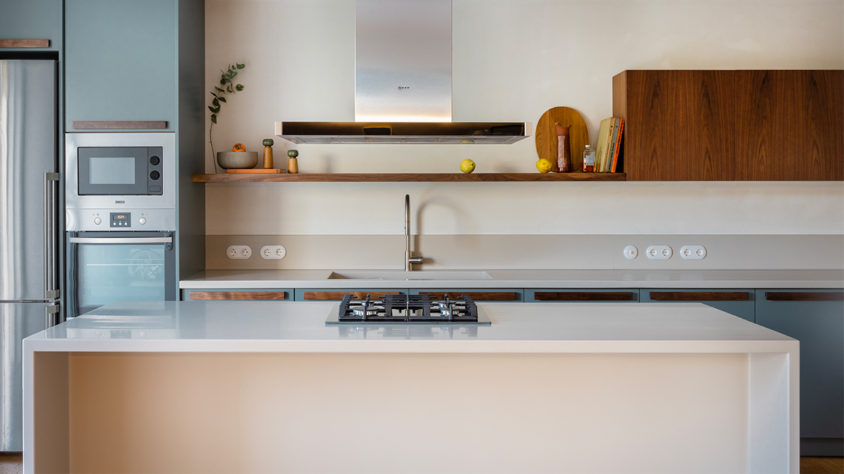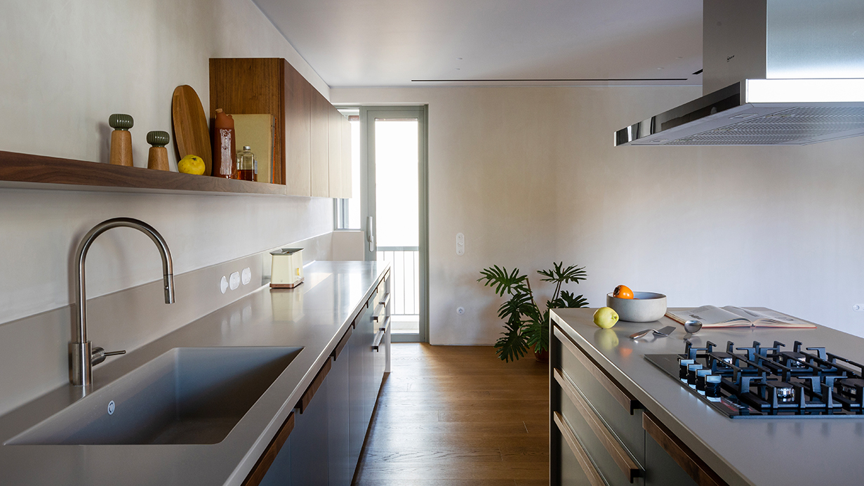 Χάρη στη χρήση φυσικών υλικών και στη διαμόρφωση πρακτικών λύσεων εσωτερικού χώρου, δόθηκε ζωή σε ένα φιλικό για περισυλλογή και οικογενειακή ζωή διαμέρισμα.
