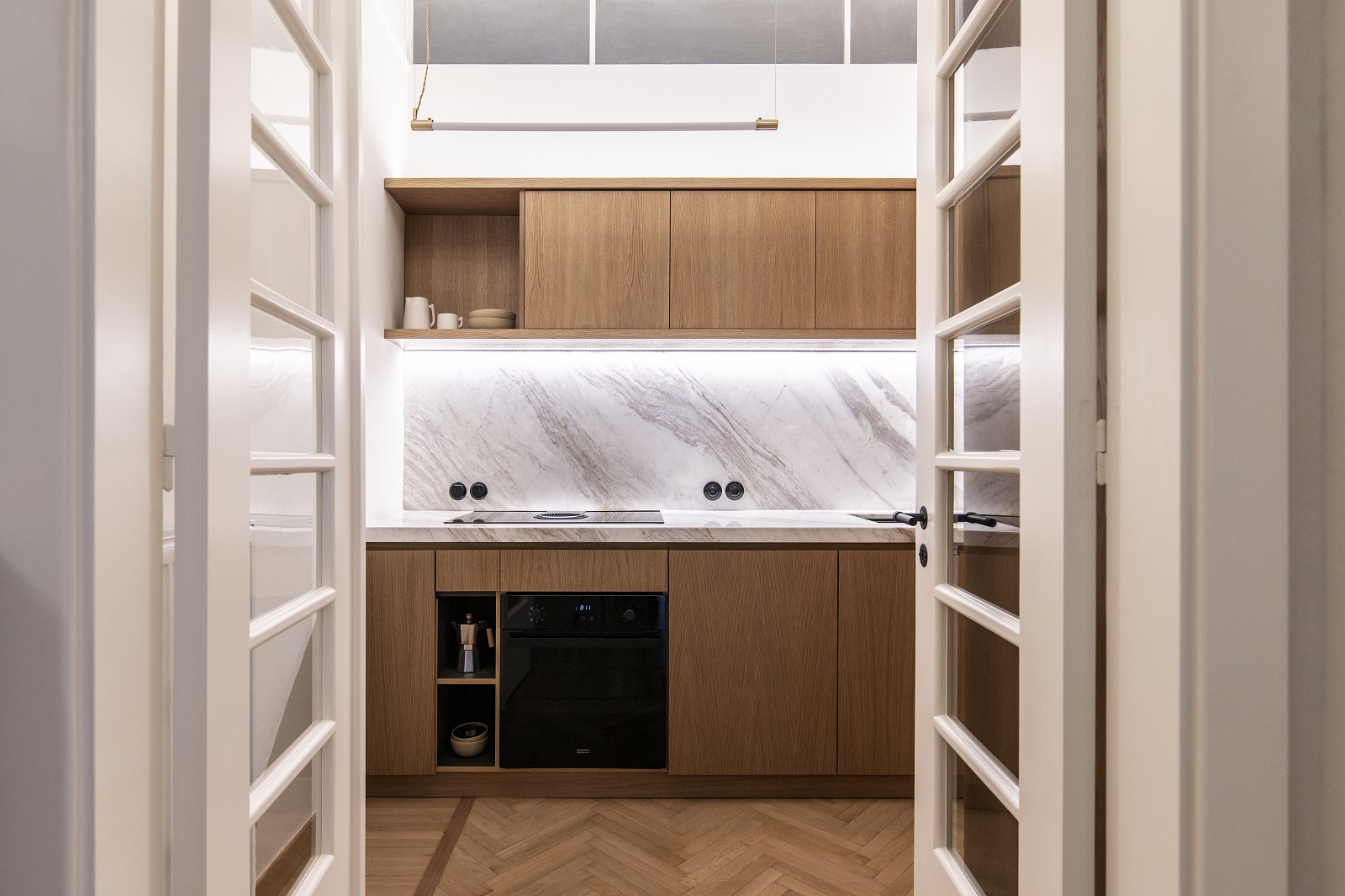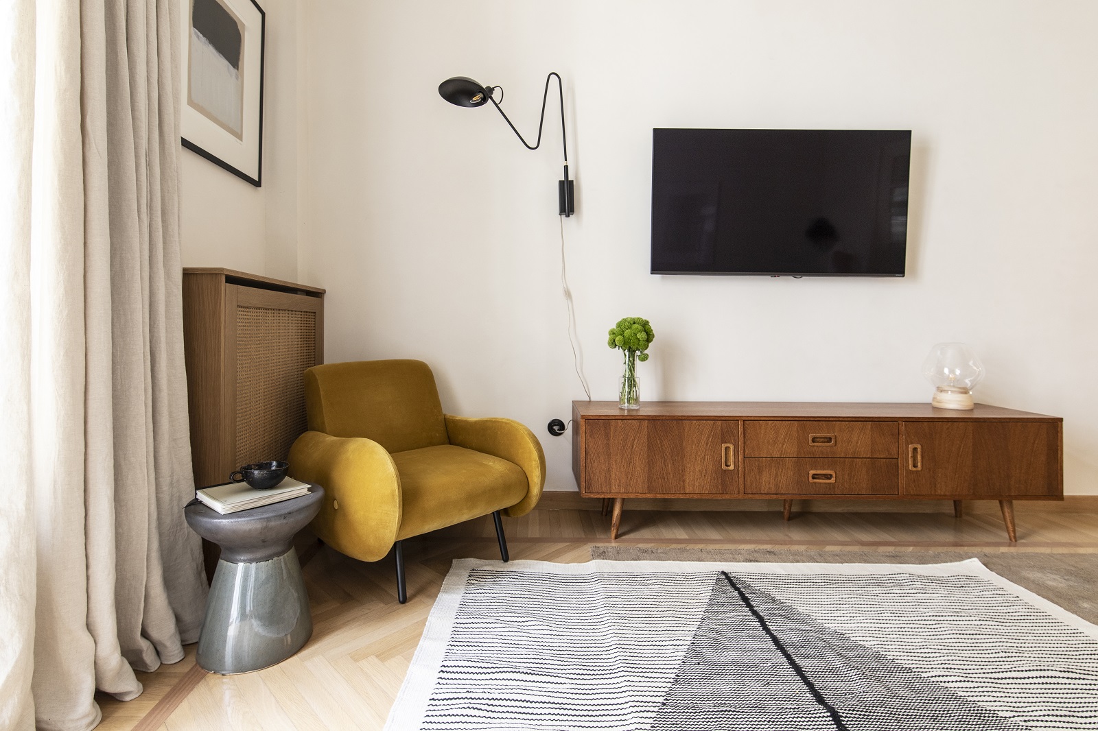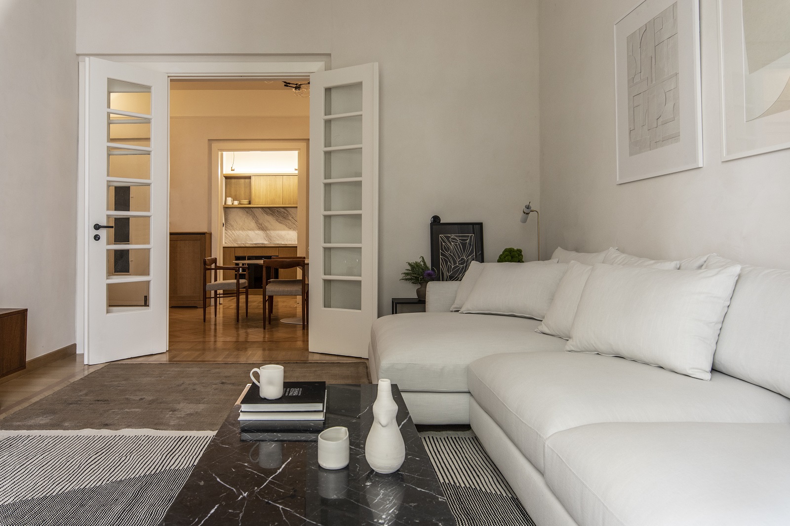 Στην καρδιά της Αθήνας, λίγα μέτρα μακριά από το μουσείο Κυκλαδικής τέχνης, βρίσκεται ένα διαμέρισμα της δεκαετίας του ’50, την ανακαίνιση του οποίου υλοποίησε το Babatchas Design Studio. Η εκλεπτυσμένη γοητεία του Κολωνακίου συναντά το midcentury design στο έργο των designers Νεφέλη Γκύζη και Χρύσα Μακρή.