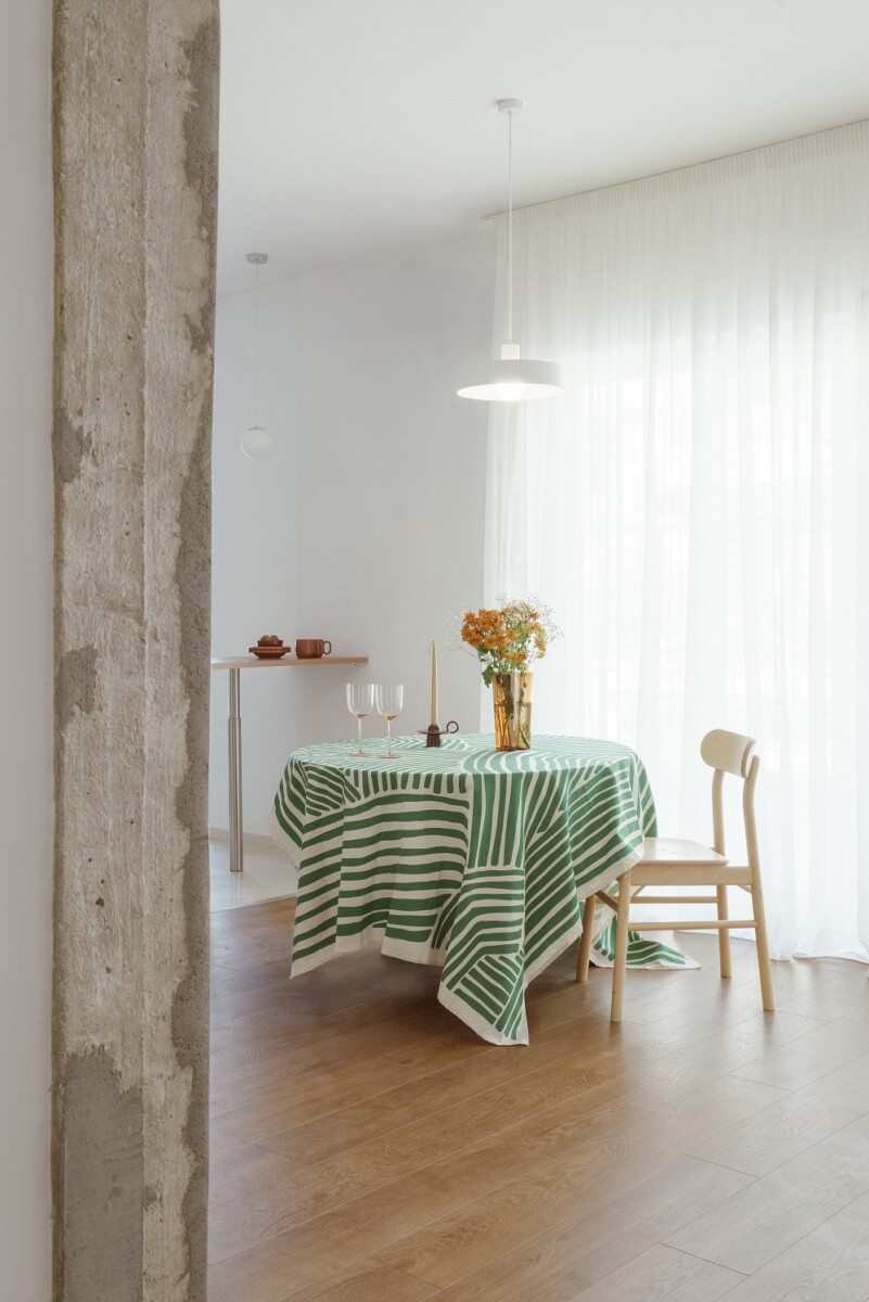 Το διαμέρισμα αποτελεί ένα χαρακτηριστικό δείγμα ριζικής ανακαίνισης και επαναπροσδιορισμού της ταυτότητας ενός χώρου με μικρές αλλά ουσιαστικές παρεμβάσεις.