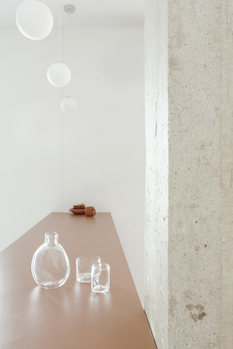 Ο τοίχος που έθετε ένα αυστηρό όριο μεταξύ της κουζίνας και της τραπεζαρίας αντικαθίσταται από ένα πάσο διευκολύνοντας τη λειτουργική συνέργεια των δύο χώρων και προσδίδοντας παράλληλα περισσότερο φυσικό φως στον προηγουμένως αυστηρά οριοθετημένο χώρο.