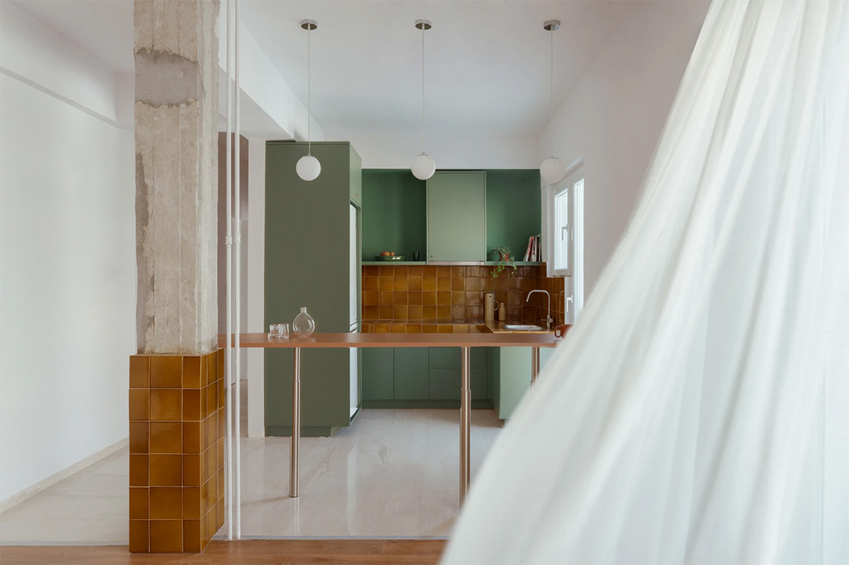 Ένα διαμέρισμα στο Παγκράτι πειραματίζεται με γήινες και παστέλ αποχρώσεις