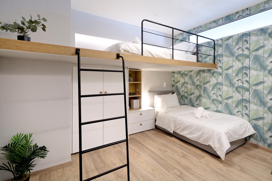 Η έξυπνη διαχείριση του ανοιχτού πλάνου εξασφάλισε τον σχεδιασμό δυο ευρύχωρων υπνοδωματίων και δύο master bedrooms.