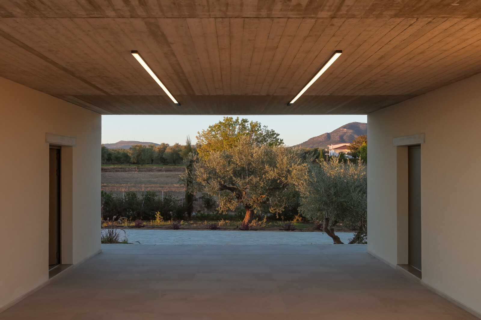 Το κτίριο τοποθετήθηκε σε κεκλιμένο επίπεδο στο βόρειο τμήμα του οικοπέδου με στόχος να διατηρηθούν άθικτα τα μονοπάτια και οι γραμμές που χαράσσουν τα αιωνόβια ελαιόδεντρα που πλαισιώνουν το φόντο του μεσσηνιακού ελαιώνα.