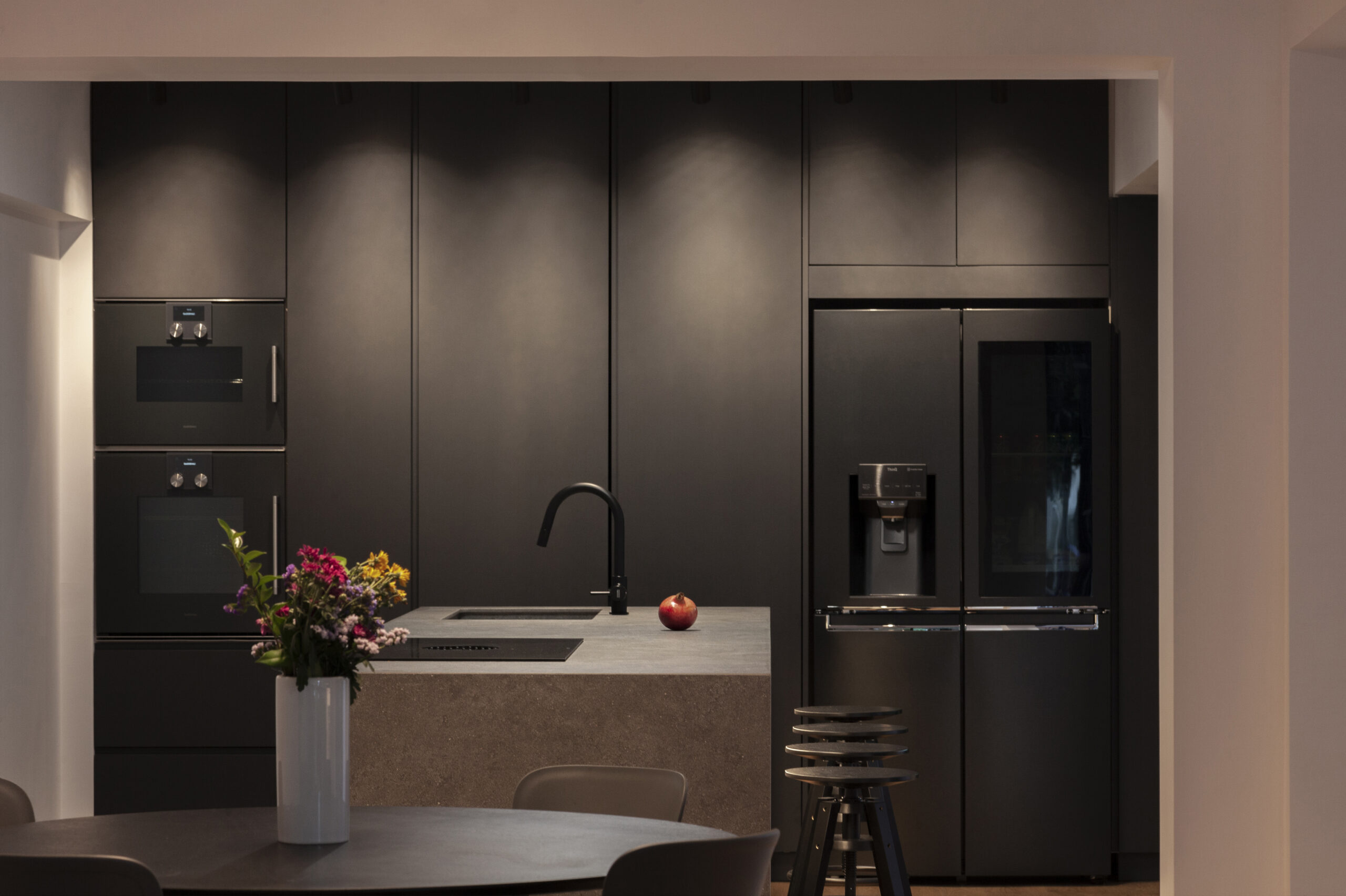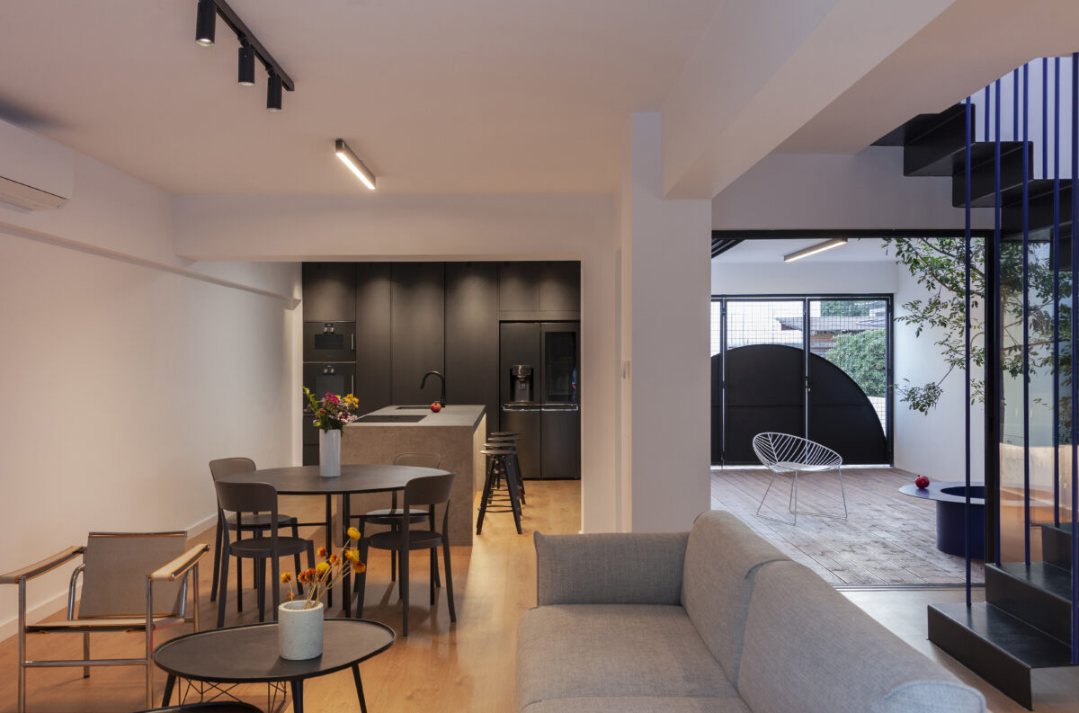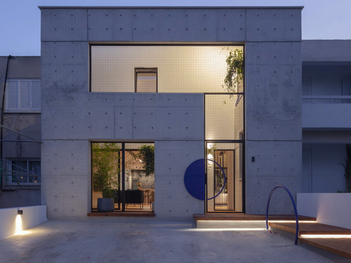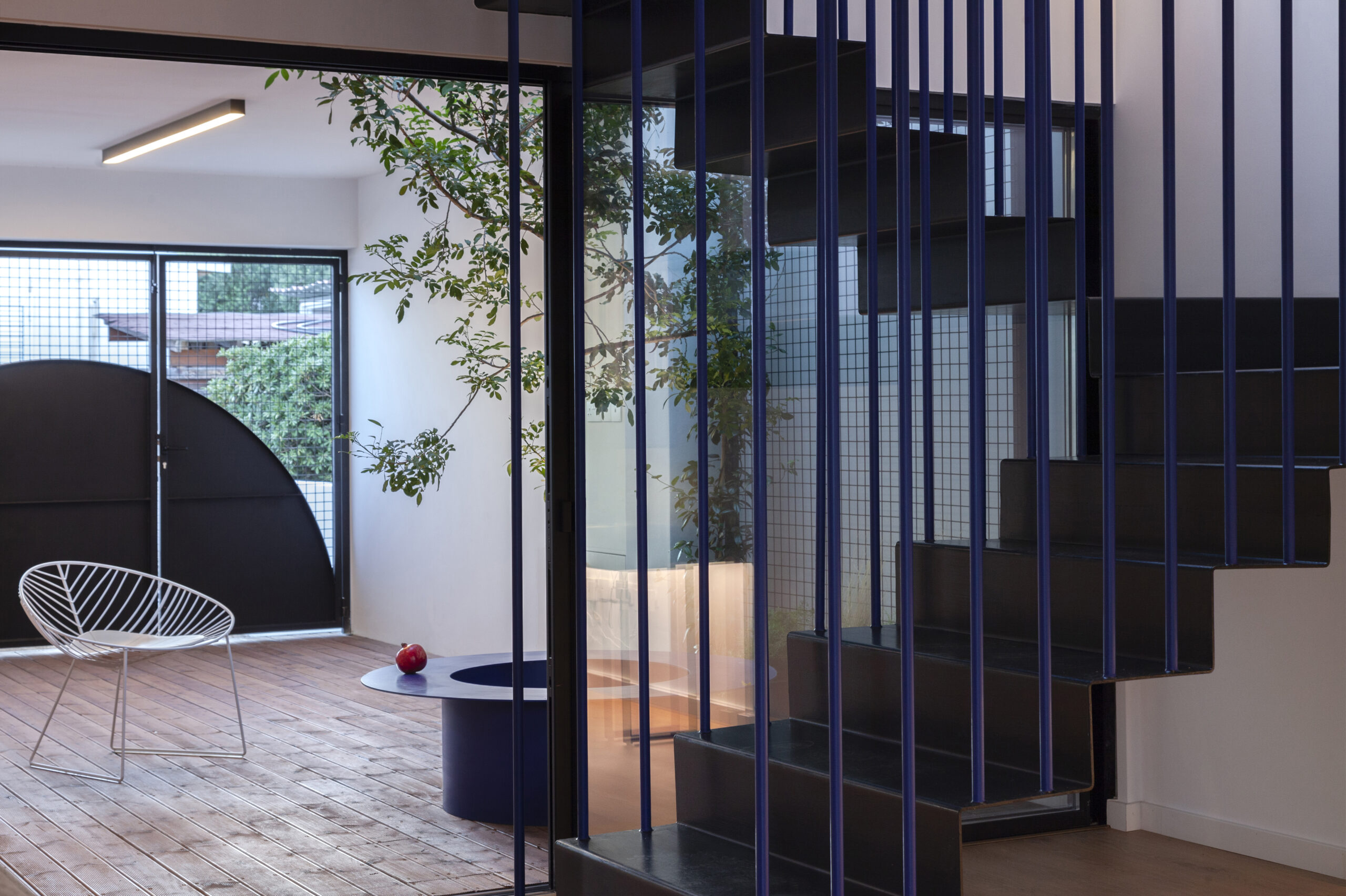Στον πυρήνα του σπιτιού, αφαιρέθηκε μάζα από τον κτιριακό όγκο. Στο κέντρο του διάκενου χώρου έχει φυτευτεί ένα μαστιχόδεντρο, το οποίο πλαισιώνεται από κυκλική καθιστική επιφάνεια για να μετουσιωθεί σε έναν κεντρικό τόπο συνάθροισης ανάμεσα στα μέλη της οικογένειας.