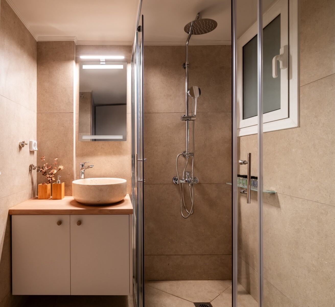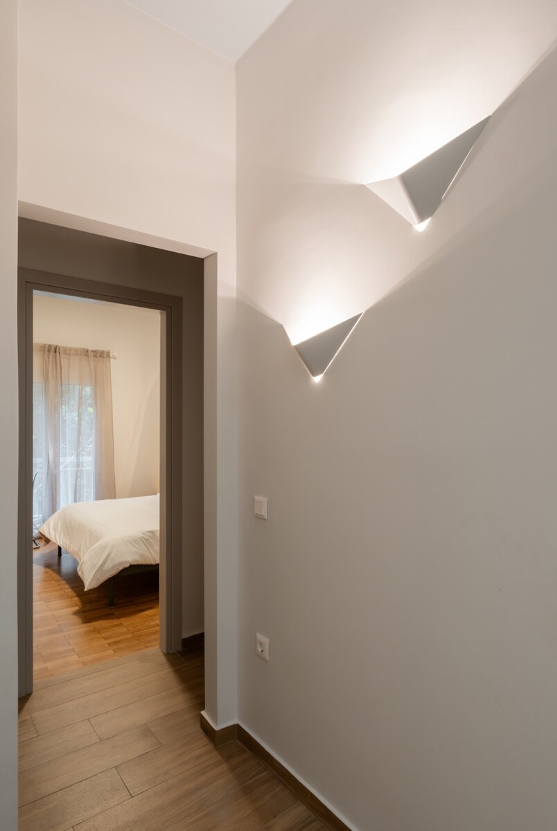 Οι επιλογές φωτισμού διαμορφώθηκαν από ταινίες LED, οι οποίες φωτίζουν έμμεσα επιλεγμένα σημεία, από διακοσμητικά φωτιστικά όπως απλίκες και μικρά κρεμαστά μονόφωτα φωτιστικά, καθώς και από πλαφονιέρες που προσδίδουν το γενικό άμεσο φως στο εσωτερικό του κάθε χώρου.