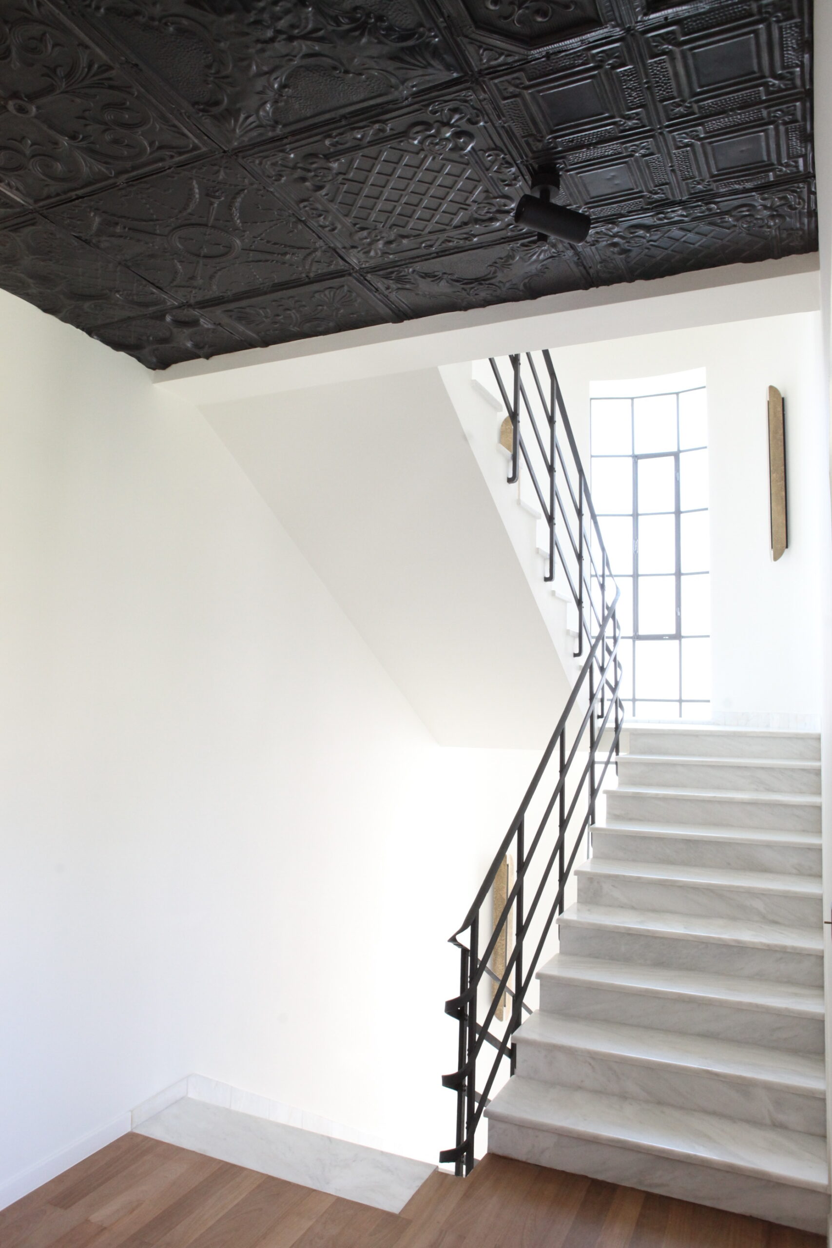 Οι μεταλλικές γλυπτικές οροφές στα lobby προέρχονται από την Αμερική του 19ου αιώνα και έφτασαν στην Ελλάδα σε τμήματα και στη συνέχεια αναρτήθηκαν.