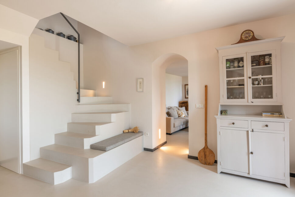 Χτισμένο αρχικά πριν 80 χρόνια και σε διαδοχικές φάσεις, το σπίτι αποτελείται από δύο ορόφους με φέρουσα πέτρινη τοιχοποιία μέσου πλάτους 80 εκατοστών. Έτσι, τμήματα των υφιστάμενων εσωτερικών τοίχων μεταξύ των αρχικών χώρων έχουν απομακρυνθεί ώστε να δημιουργηθεί ένας περισσότερο ενοποιημένος χώρος, κατάλληλος για τις οικογενειακές συγκεντρώσεις.