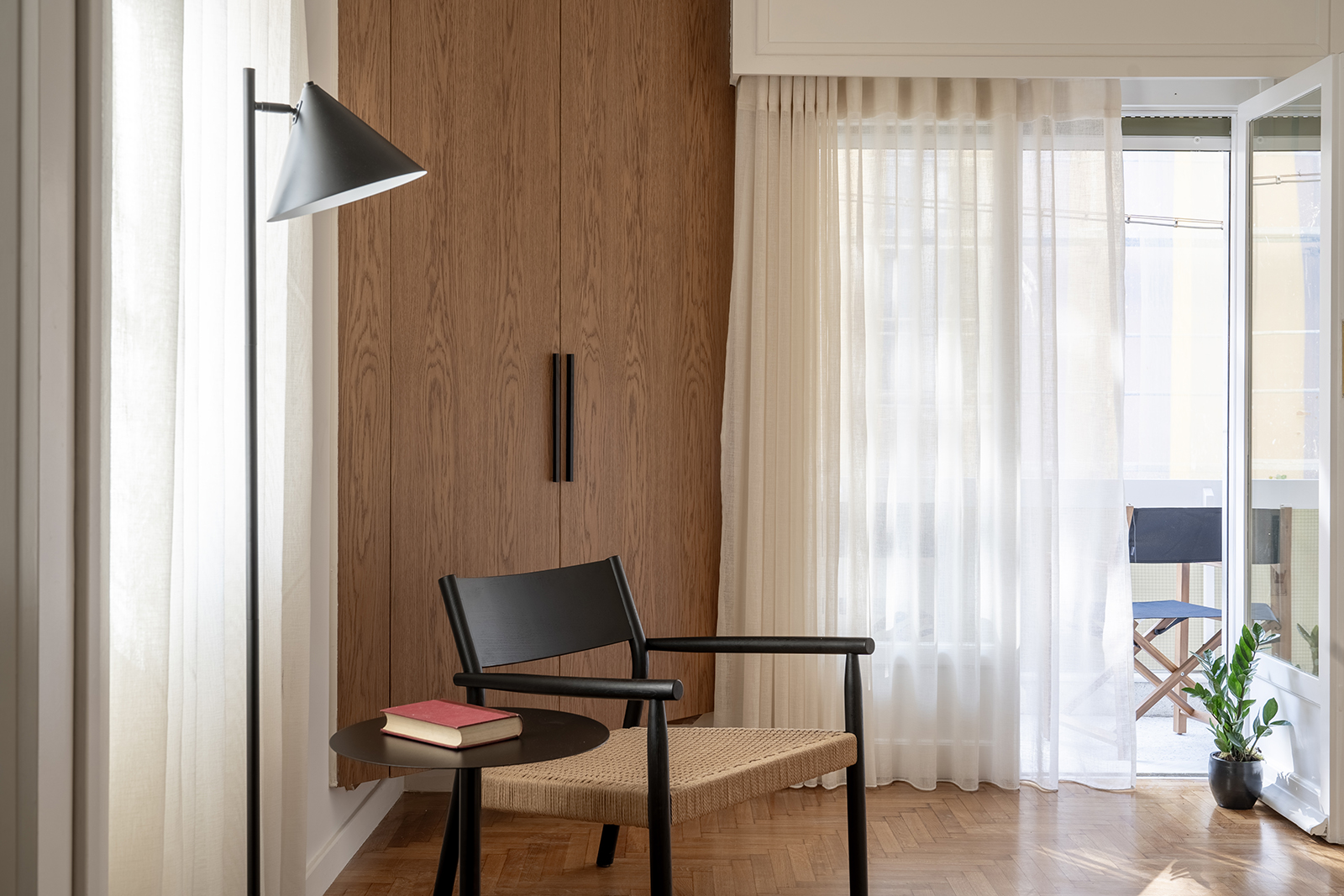 Σε κοντινή απόσταση από την Αρχιτεκτονική Σχολή και το Εθνικό Αρχαιολογικό Μουσείο, ένα διαμέρισμα που κατασκευάστηκε στα τέλη της δεκαετίας του ’70, στην καρδιά της συνοικίας των Εξαρχείων και καταλαμβάνει τον πρώτο όροφο μιας τυπικής αθηναϊκής πολυκατοικίας, ανακαινίζεται από το γραφείο Studio Ephyra, αντλώντας έμπνευση από τα διαχρονικά πρότυπα που συνθέτουν την ταυτότητα της πόλης, με μια διάθεση διακριτικών χειρονομιών.