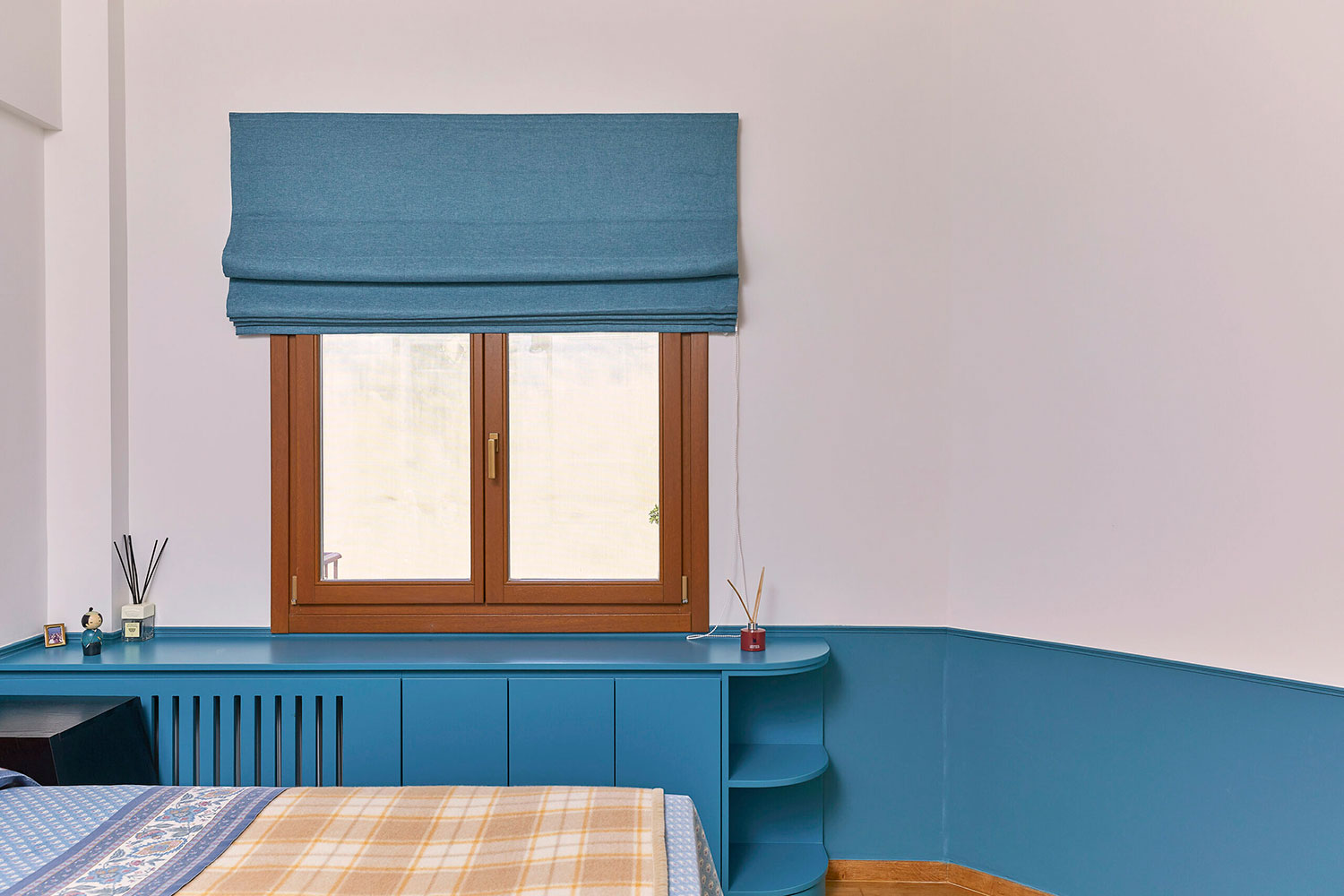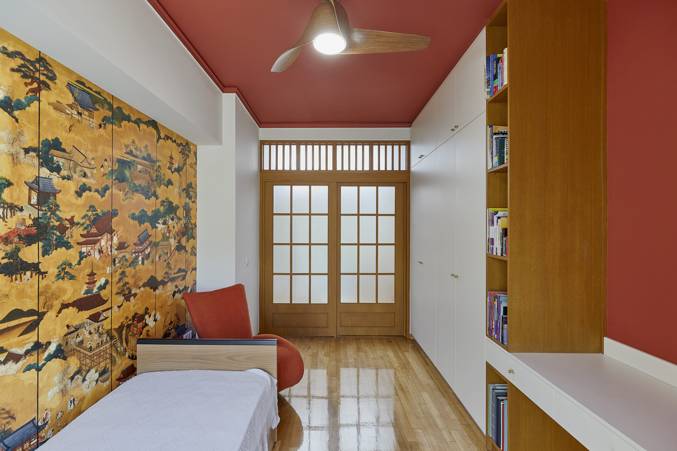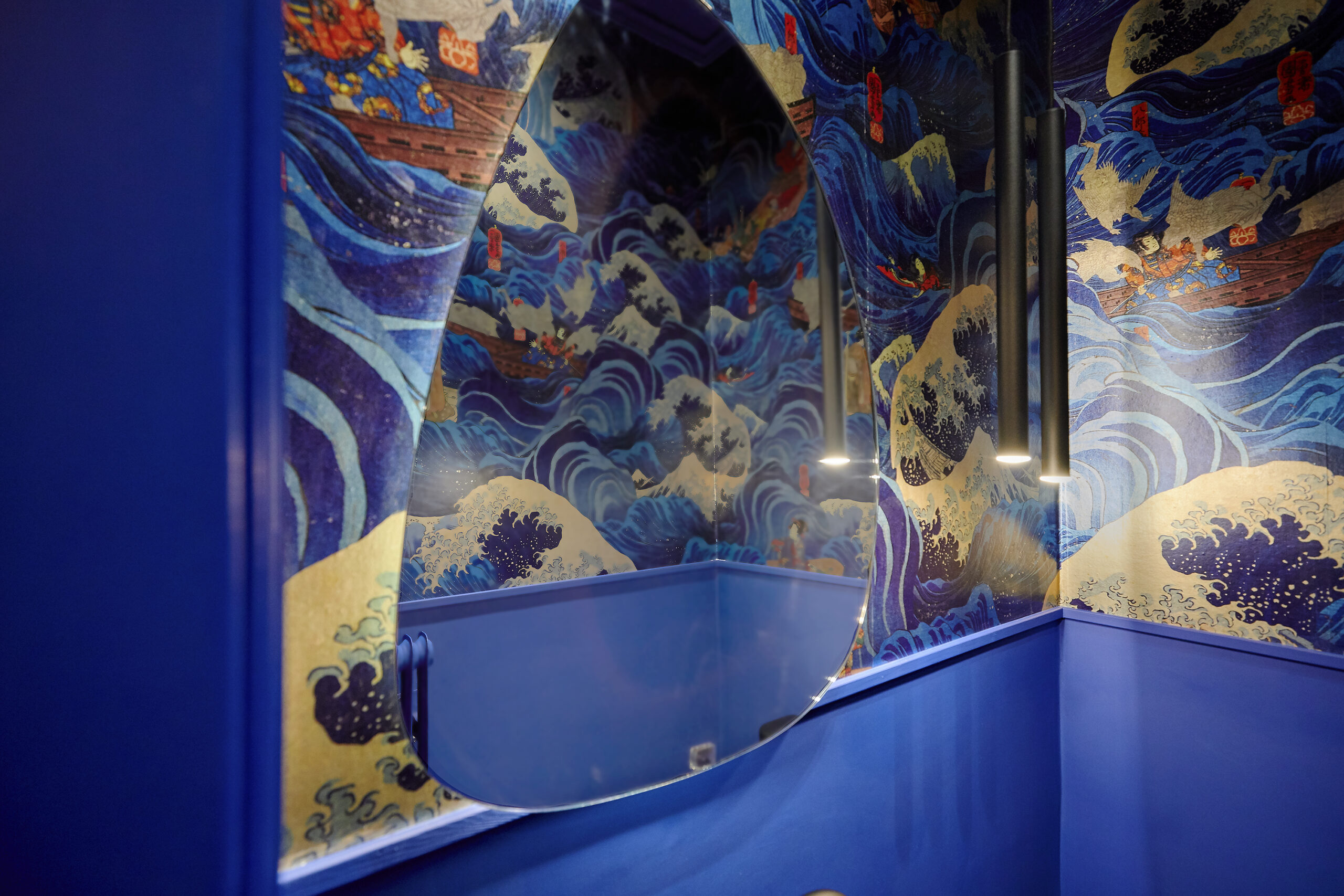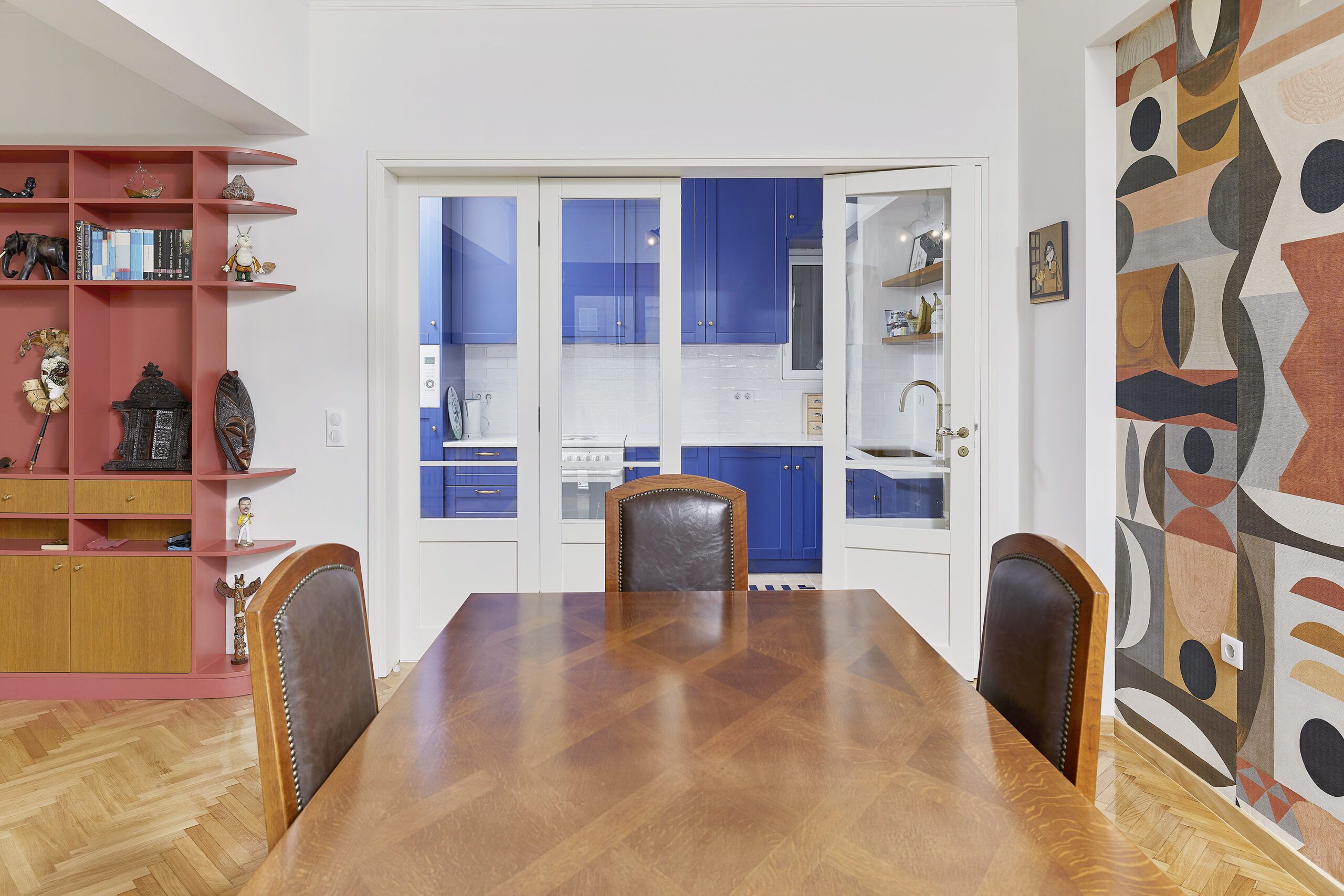 Η πολύχρωμη ταυτότητα των εσωτερικών χώρων διαμορφώνεται από τη χρήση διαφορετικών χρωμάτων, μοναδικών ταπετσαριών και πολύχρωμων πλακιδίων, δημιουργώντας μια έντονη αλληλεπίδραση.