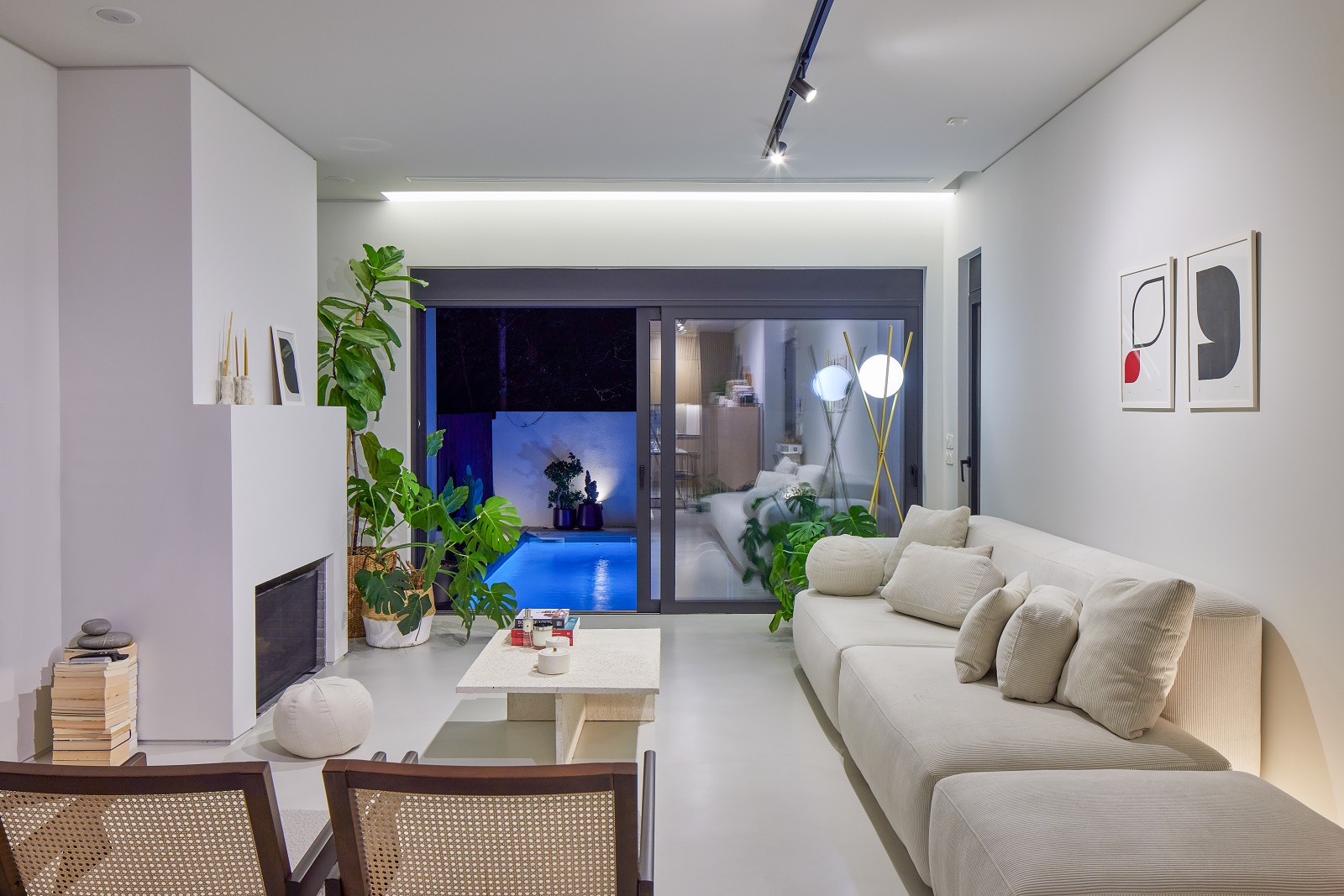 Ακολουθώντας τη µορφολογία του οικοπέδου µε τη µηδενική κλίση και το αυστηρό, ιδιαίτερα στενόµακρο σχήµα, η αρχιτεκτονική σύνθεση, που φέρει την υπογραφή του γραφείου blueroomArchitects, αποκτά έντονη γραµµικότητα.