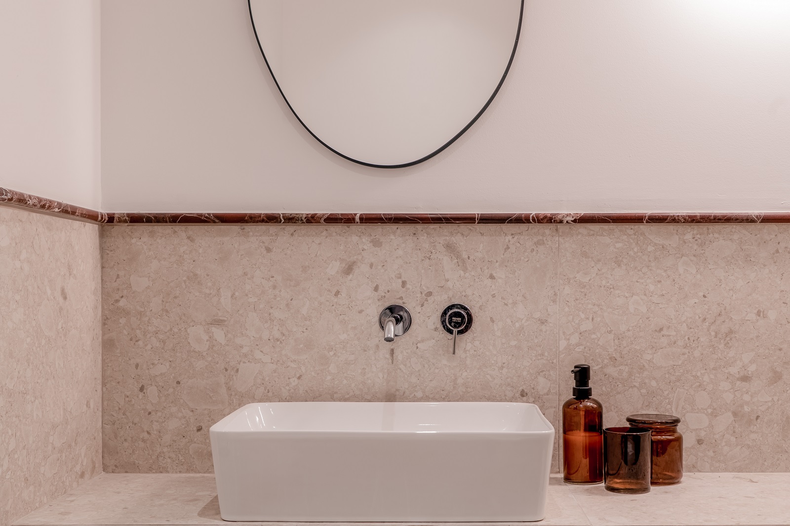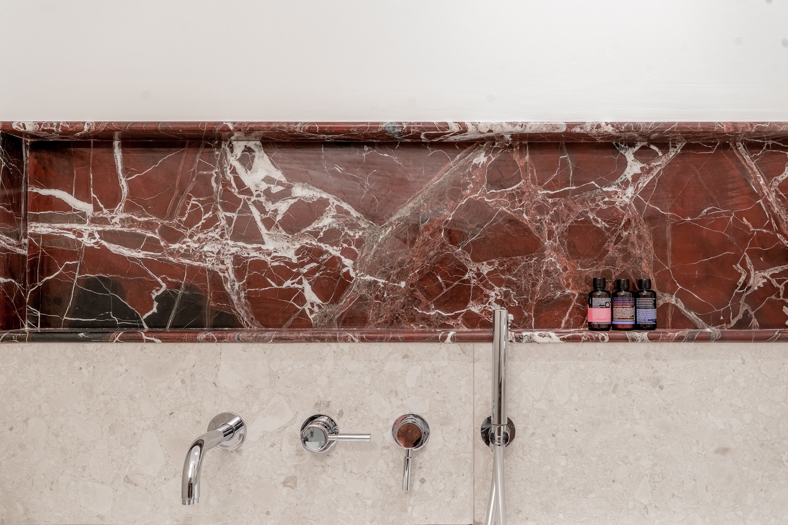 Ανάγλυφα υλικά, ποικίλα φινιρίσματα και κομψές μαρμάρινες πινελιές προσθέτουν στρώματα βάθους και ιστορικής αναφοράς. Αυτά τα χαρακτηριστικά συμπληρώνουν τη σύγχρονη αισθητική, δημιουργώντας ένα αρμονικό μείγμα παρελθόντος και παρόντος.