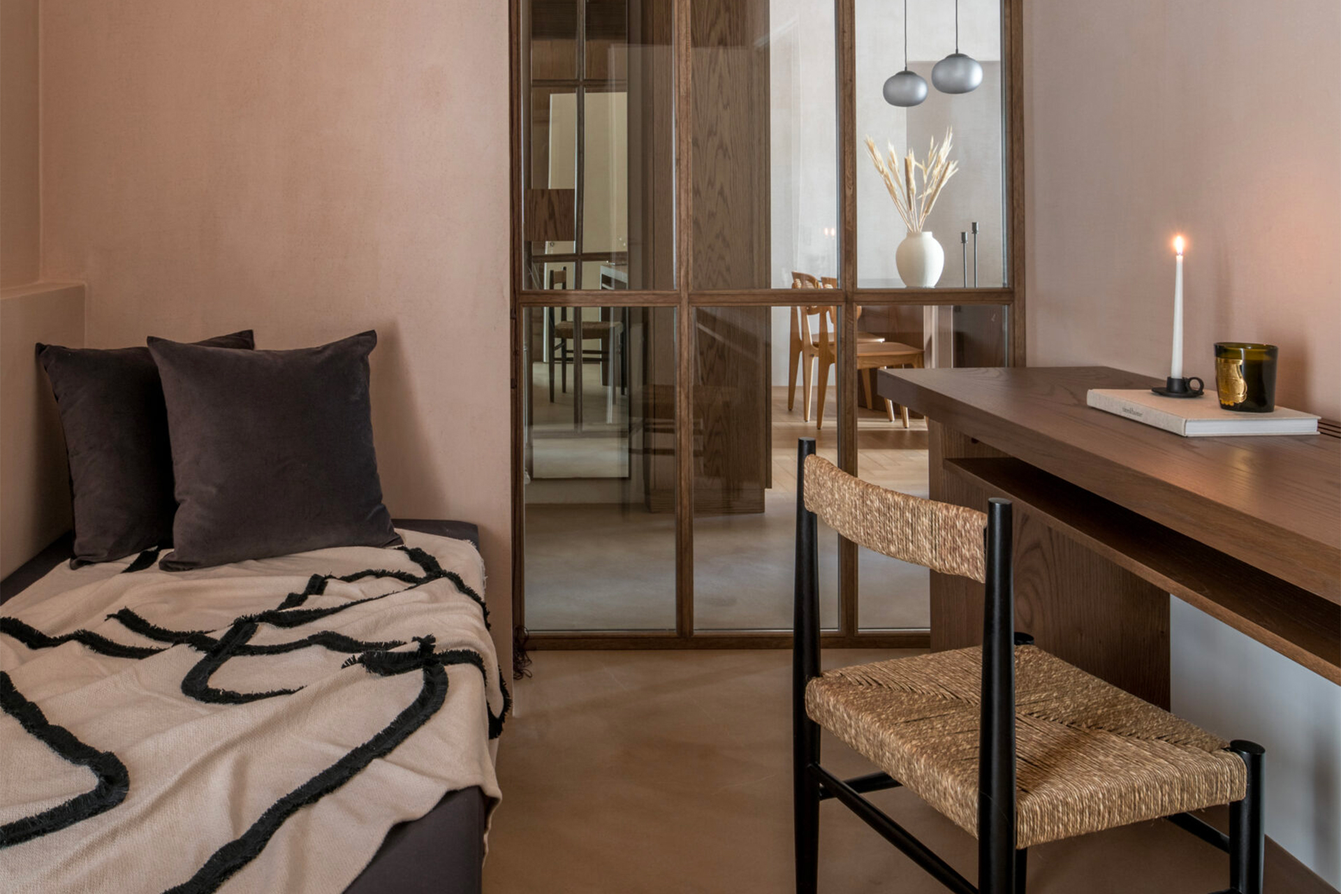 Λειτουργώντας ως διαφυγή από την ίδια την πόλη, το διαμέρισμα προσφέρει μια αίσθηση ηρεμίας μακριά από το βουητό των δρόμων, συνδυάζοντας την απλότητα με την κομψότητα και τα υλικά της φύσης.