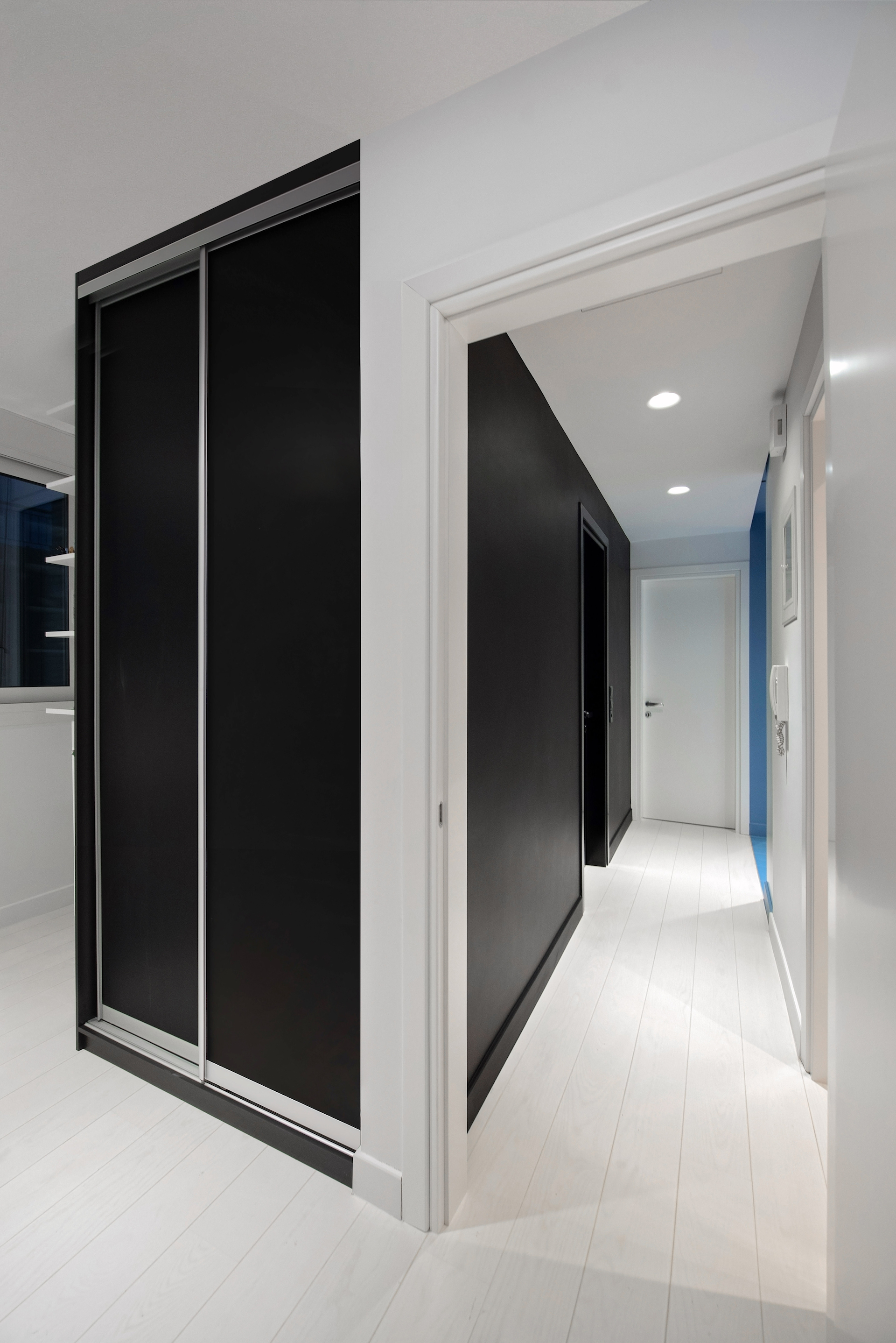 Στην ιδιωτική περιοχή, τα τρία δωμάτια αρθρώνονται γύρω από τον κεντρικό διάδρομο και περικλείουν ένα μαύρο κουτί, μια κατασκευή που εμπεριέχει το λουτρό και τις ντουλάπες.
