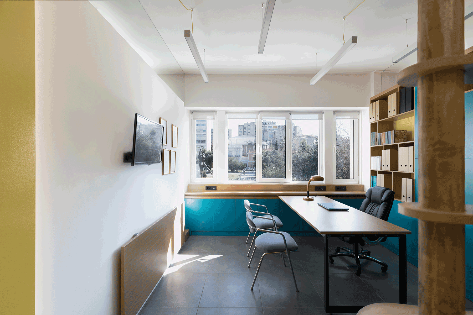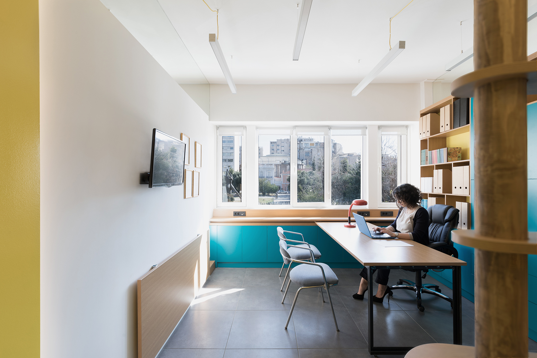 Όμως, σπάνια αναφερόμαστε στο ότι για όσους ασκούν ένα επάγγελμα «γραφείου», το να περνούν καθημερινά τις ώρες τους σ’ έναν ελκυστικό χώρο, που έχει αισθητική και είναι συνάμα λειτουργικός, αποτελεί κίνητρο. Πόσο μάλλον όταν έχεις την τύχη να εργάζεσαι σε ένα χώρο με θέα σε μια πλατεία του κέντρου της Αθήνας, σε ένα παλιό γραφείο που διαμορφώθηκε προκειμένου να εξυπηρετεί τις σημερινές ανάγκες.