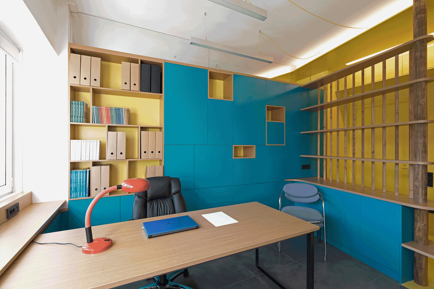 «To διαμέρισμα, αντιπροσωπευτικό δείγμα του τύπου “γραφείου – κουτιού” της εποχής, χρειαζόταν να μεταλλαχτεί, ώστε να εξυπηρετεί απόλυτα τις ανάγκες ενός σύγχρονου μεταφραστικού – δικηγορικού γραφείου. Βασικό ζητούμενο της μελέτης ήταν η επίτευξη της αίσθησης μεγαλύτερου χώρου, αλλά και η χωρική διάκριση των λειτουργιών», εξηγεί ο Λευτέρης Τσολάκης των Taf architects που μαζί με την Pure Made η οποία ανέλαβε την κατασκευή ολοκλήρωσαν το έργο.