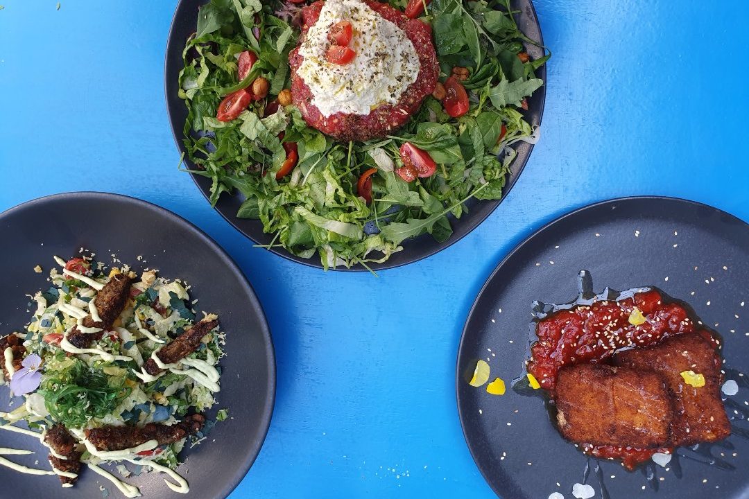 Κάνε λιγάκι υπομονή, διότι πριν φτάσεις σε αυτά έχεις να διαλέξεις ανάμεσα από τσαχπίνικα ορεκτικά, όπως τα Portobello Road γεμιστά με σπανάκι, ρόκα, τοματίνια, φρέσκο κρεμμύδι και μοτσαρέλα, την ίδια τη μοτσαρέλα που είναι από ξηρούς καρπούς σε τραγανή κρούστα από χειροποίητα cornflakes και μαρμελάδα ντομάτα αρωματισμένη με μοσχολέμονο ή τα χειροποίητα μωβ και κίτρινα νάτσος με τσένταρ γλυκοπατάτας, sour cream αμυγδάλου, pico de gallo και πικάντικο κιμά από λαχανικά με κόκκινα φασόλια και καλαμπόκι.