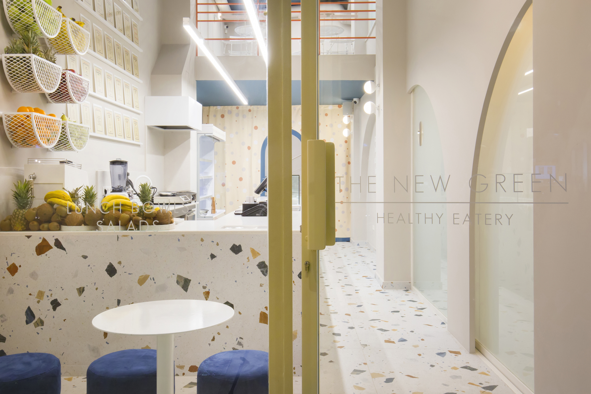 Σε έναν χώρο 50 τετραγωνικών μέτρων, το The New Green είναι ένα εστιατόριο υγιεινής διατροφής που άνοιξε πρόσφατα στα Τρίκαλα, σερβίρει πρωινό, σαλάτες, lunch bowls και χυμούς. Δεν έχουμε βρεθεί ακόμη στα μέρη του για δοκιμάσουμε τις γεύσεις του, αλλά, μόλις βραβεύτηκε για το design του, στα τελευταία Big See Interior Design Award 2019 στη Λιουμπλιάνα και καταλαβαίνουμε τον λόγο.