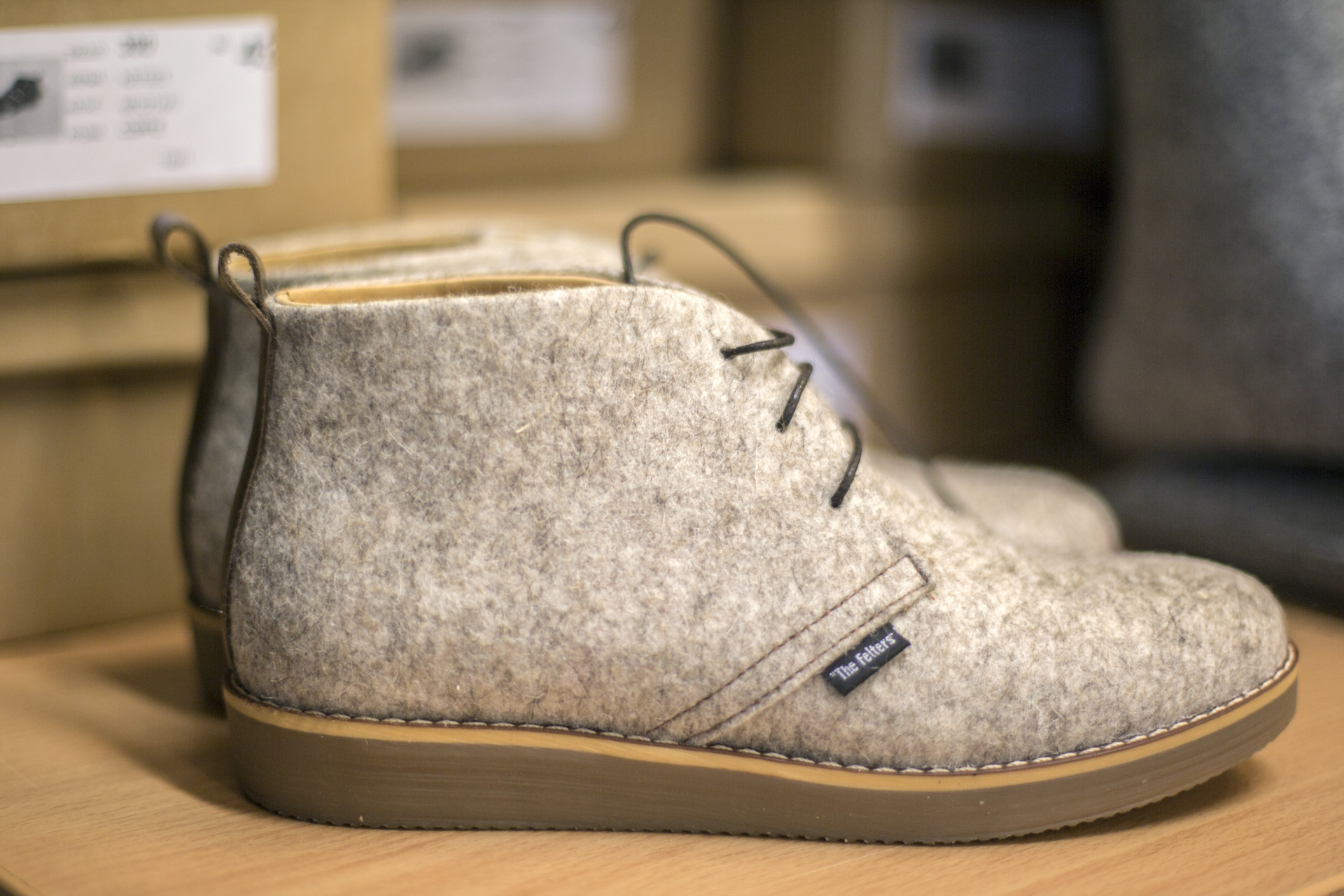 Αφού παρακολούθησα όλα τα στάδια της διαδικασίας μετατροπής μαλλιού σε κετσέ, ήθελα πολύ να δοκιμάσω τα παπούτσια που σχεδιάζει ο Κωνσταντίνος. Το design είναι μεν κλασσικό αλλά παράλληλα μοντέρνο, πρωτότυπο και μάλλον μοναδικό για τα ελληνικά δεδομένα. Ο κετσές και οι επιλογές των χρωμάτων, σε καφέ και γκρί, προσδίδουν ένα ιδιαίτερο στυλ στην εμφάνιση και την ίδια στιγμή είναι άνετα και ξεκούραστα στο περπάτημα. «Ο κετσές είναι κατά βάση κλασικός για αυτό και ήθελα να δώσω και μια κλασική όψη και στα προϊόντα. Αρχικά το design το επιμελήθηκα εγώ, αλλά πλέον συνεργαζόμαστε με κάποιους designers για να υπάρχει μεγαλύτερη γκάμα στα σχέδια και στα χρώματα. Επίσης συνεργαζόμαστε με κάθε designer όπου θέλει να δημιουργήσει από μόνος του κάποιο προϊόν με τον μάλλινο κετσέ». Εάν λοιπόν κάποιος φέρει το δικό του σχέδιο στην βιοτεχνία Χατζηαγάπογλου, εκείνοι θα το φτιάξουν στη στιγμή, σύμφωνα φυσικά με την εμπειρία, τις συμβουλές και τις πολύτιμες γνώσεις τους.