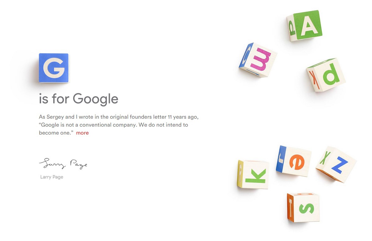 Έτσι λοιπόν προέκυψε η Alphabet. H Google θα συνεχίσει να είναι αυτό που είναι, έχοντας πλέον στο τιμόνι τον Σουντάρ Πιτσάι, έναν άνθρωπο που βρίσκεται στις τάξεις της εταιρείας για πάνω από μία δεκαετία και έχει εργαστεί μεταξύ άλλων στην ανάπτυξη των Chrome, Chrome OS, Gmail και Google Maps. Παράλληλα, οι ιδρυτές της, Λάρι Πέητζ και Σεργκέι Μπριν, θα συνεχίσουν να πειραματίζονται άφοβα σε οτιδήποτε θεωρήσουν πως μπορεί να τους αποφέρει έσοδα στο μέλλον. Τα οικονομικά αποτελέσματα της Google θα αντιστοιχούν σε αυτά ενός τμήματος μιας ευρύτερης εταιρείας ενώ οι ενημερώσεις θα γίνονται εις διπλούν: μία για τη Google και μία για την Alphabet.