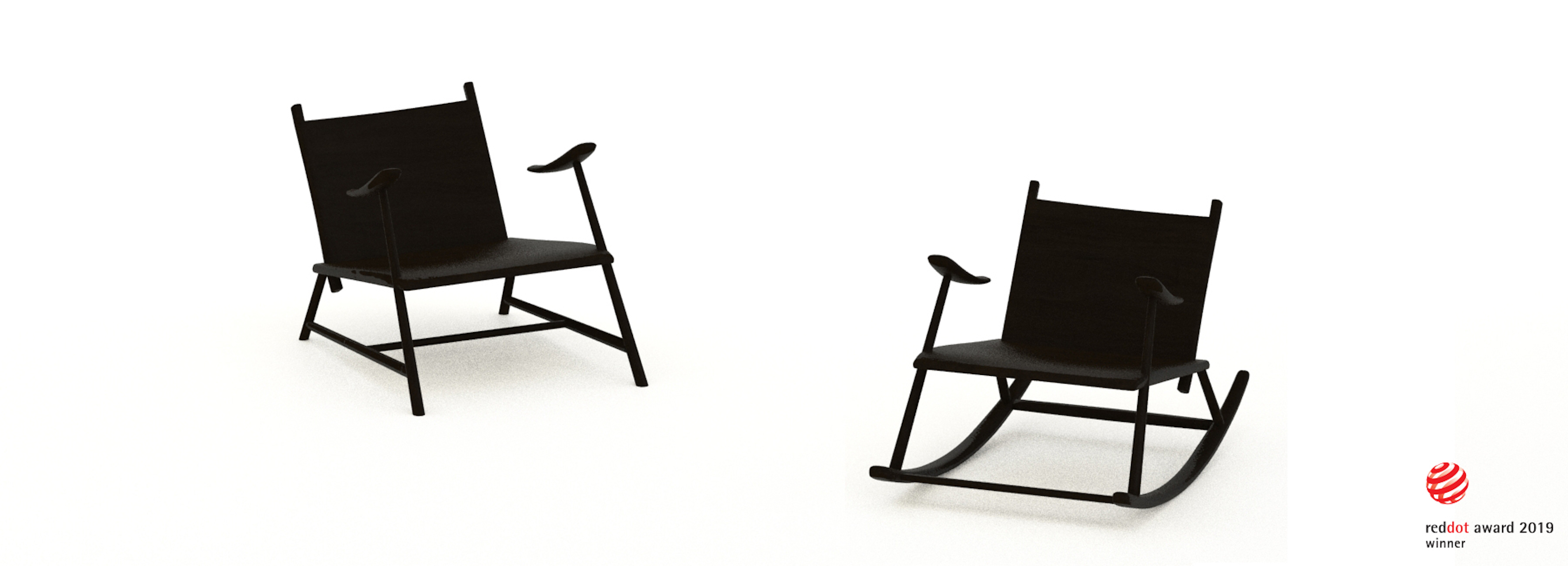 Έχω κάνει αρκετά σχέδια καρέκλας από τα οποία ολοκληρώθηκε ένα που αποτελεί και το πιο πρόσφατο προϊόν μου. Είναι η συλλογή Yueyi που απαρτίζεται από μια κουνιστή καρέκλα και μια πολυθρόνα που πρόσφατα βραβεύτηκαν με Red Dot Award. H συλλογή αυτή είναι επηρεασμένη από την αισθητική των κινέζικων ιδεογραμμάτων και τη λιτότητα του ύφους της Ανατολικής κουλτούρας. Παρακολουθούσα ένα θεωρητικό μάθημα στην ΑΣΚΤ όπου φοιτώ και αφηρημένη τραβούσα γραμμές στο πρόχειρο. Τελικά, έπειτα από δουλειά και επεξεργασία, αυτές οι γραμμές αποτέλεσαν το τελικό σχέδιο για τις δύο καρέκλες.