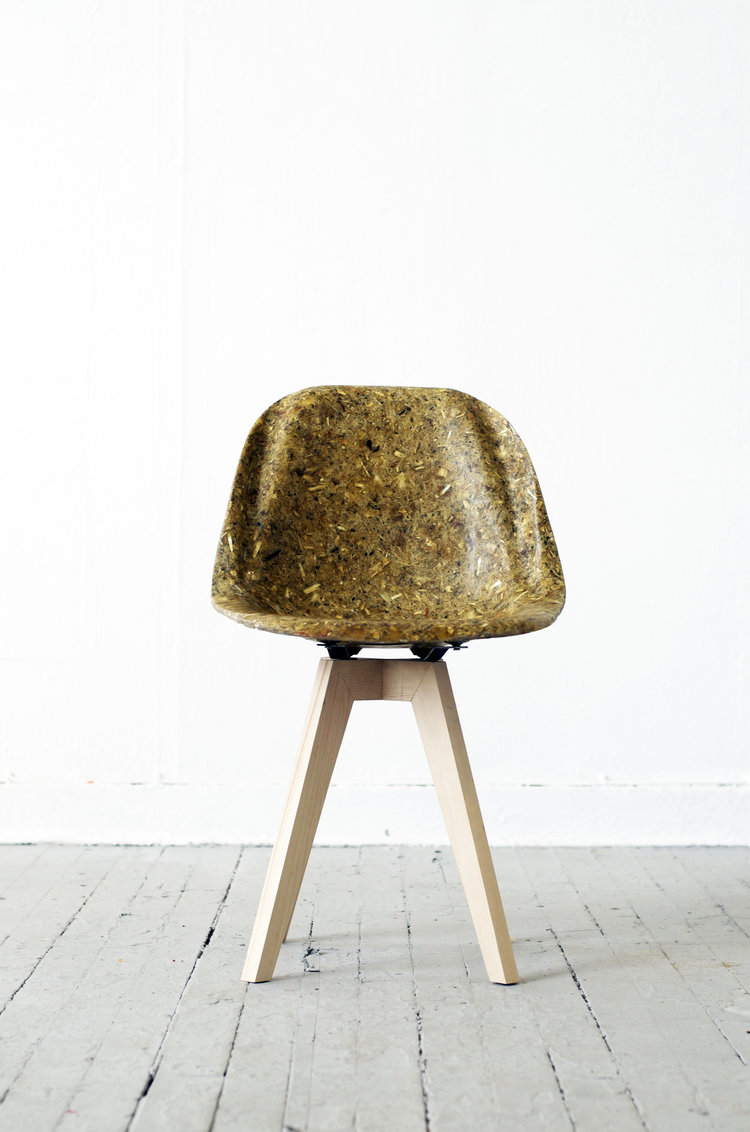 Η πρώτη καρέκλα που σχεδίασα από αγριαγκινάρα ήταν μία παραλλαγή ενός design icon, της DSW των Eames. Στόχος ήταν να κάνω μια δήλωση σχετικά με την χρήση οικολογικών υλικών αντί του fiberglass και του πλαστικού. Έτσι, βασισμένος σε ένα κλασικό παράδειγμα αυτής της μεθόδου, προέκυψε μία παραλλαγή εκείνου του σχεδίου, με μικρές διαφορές που είχαν κυρίως να κάνουν με την ευκολία κατασκευής και τον χειρισμό του υλικού.