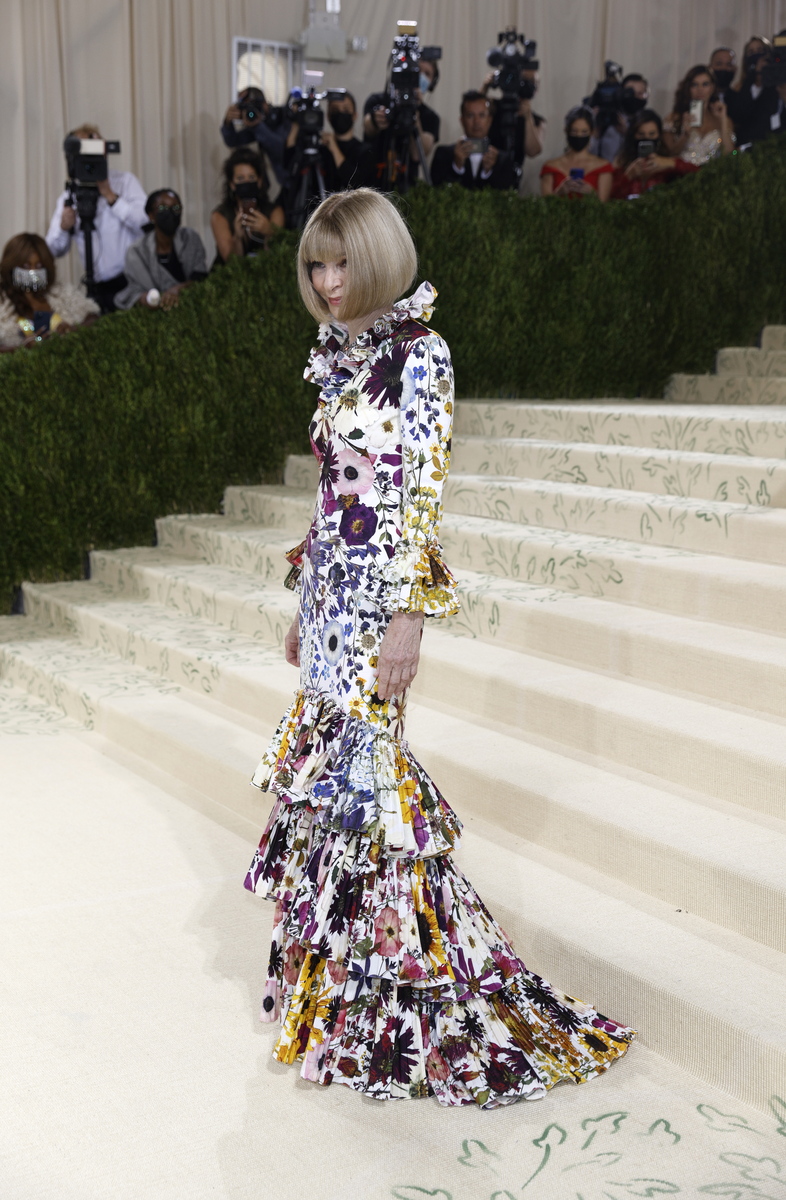 H Anna Wintour με φλοράλ φόρεμα του οίκου Oscar de la Renta.
