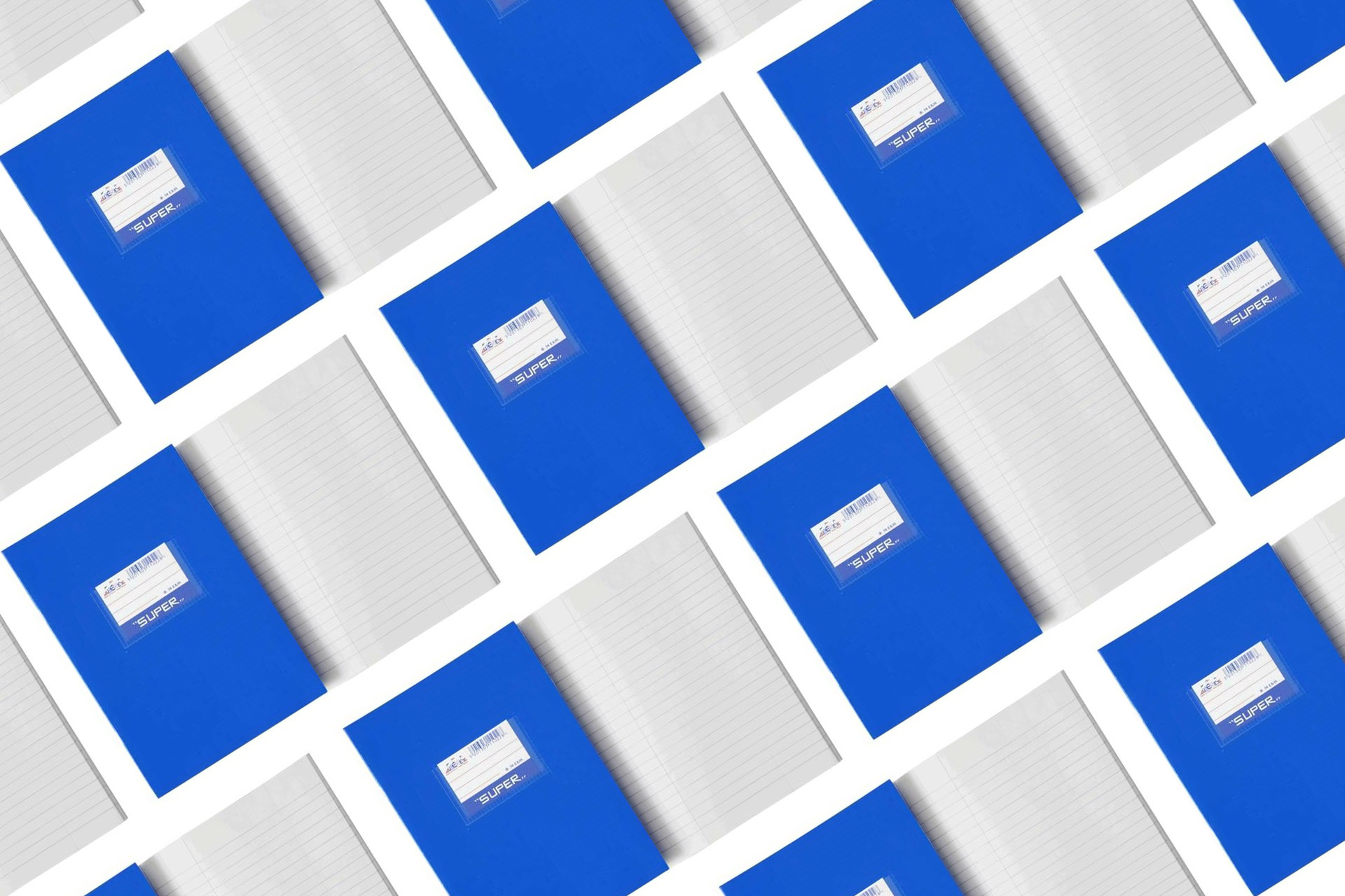 Το τετράδιο με το χαρακτηριστικό μπλε πλαστικό εξώφυλλο που δεν φθείρεται εύκολα μέσα στη βαριά σχολική τσάντα είναι ένα πρωτοποριακό προϊόν για την εποχή του.