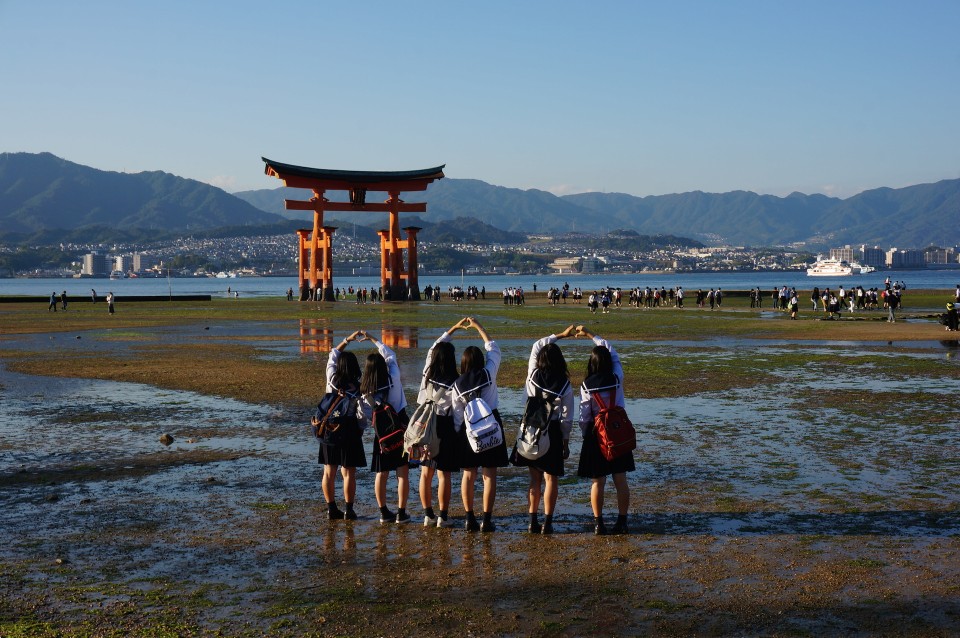 Ομαδική φωτογραφία μαθητριών στη Μιγιατζίμα