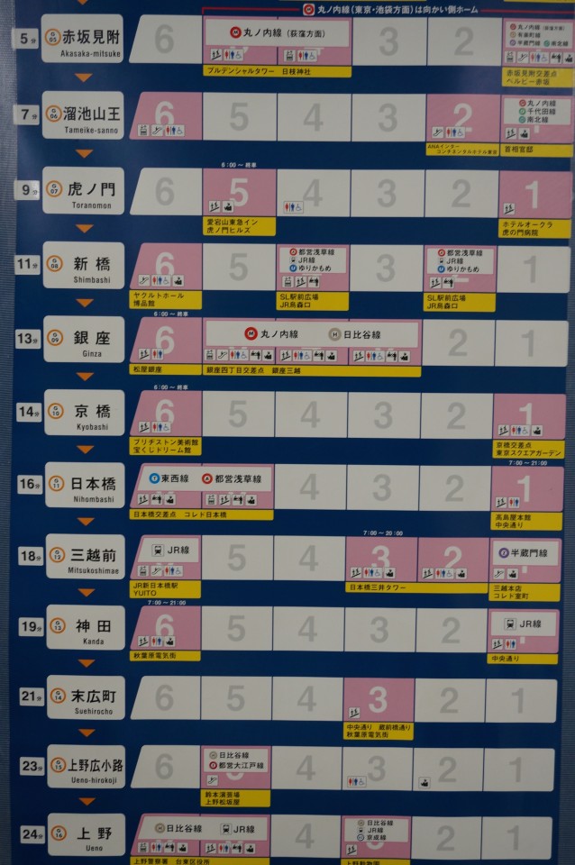 Σήμανση στο κέντρο του Τόκυο για να ξέρεις τα βαγόνια και τις αλλαγές τους