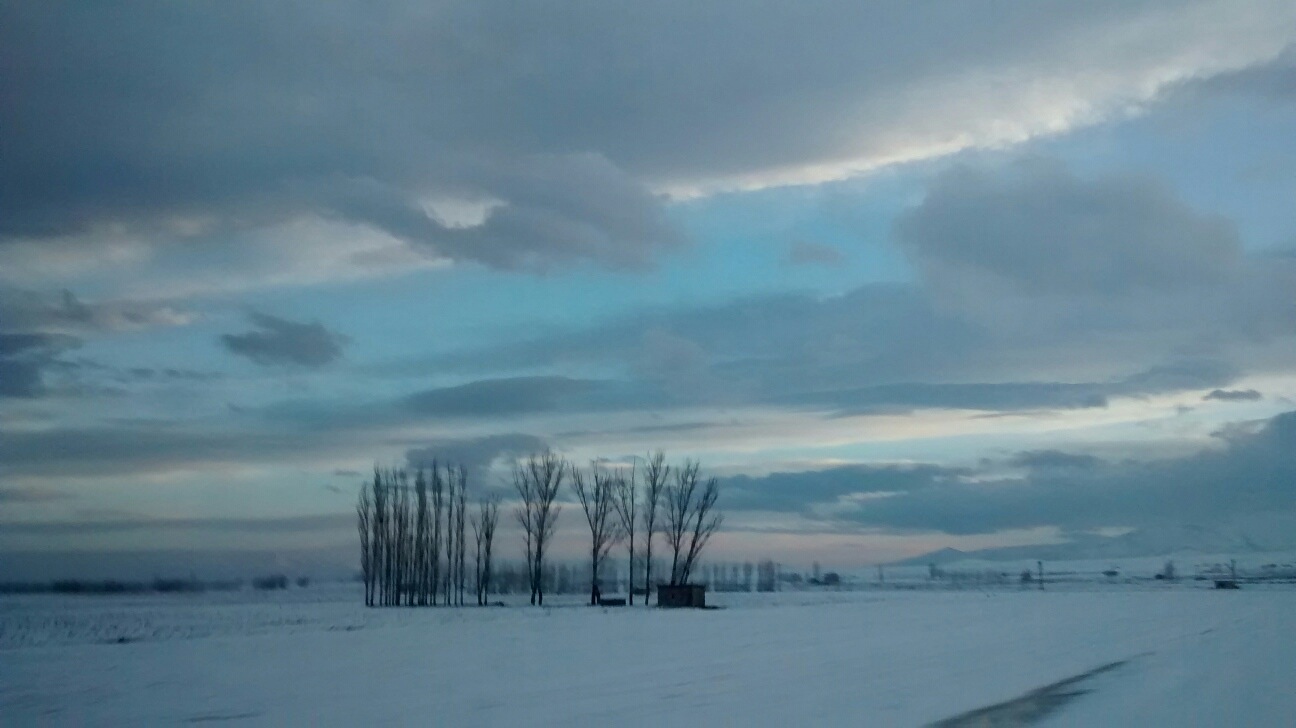 Ο άντρας αυτός από την Guzelyurt, την Καλβάρη, μας έκανε το πιο μεγάλο δώρο. Ο ήλιος έδυε πίσω μας, η διαδρομή που πήρε ήταν γεμάτη με απαλά βουνά και χιόνια και ο ουρανός τιρκουάζ και σκούρο γαλάζιο με σύννεφα αγγέλους να φτερουγίζουν συνεχώς.