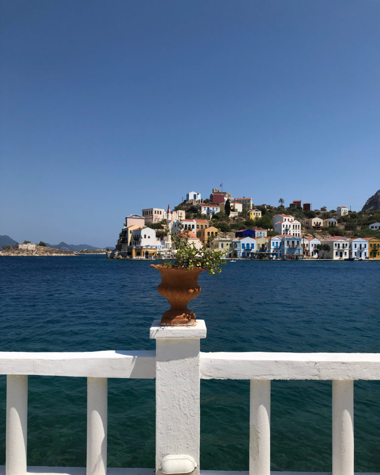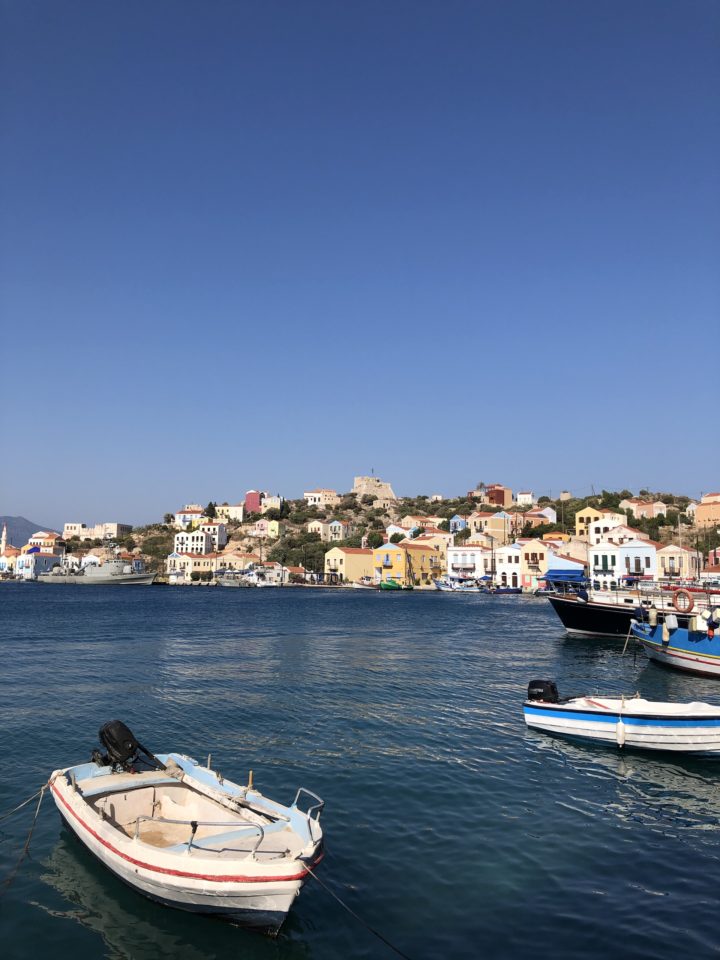 Αν είχα ένα ευρώ για κάθε αστειάκι που άκουσα (κι ακούω ακόμα) έχοντας επιλέξει το Καστελλόριζο για τις φετινές διακοπές, μαλλον θα είχα αγοράσει τώρα κάποιο από τα υπέροχα δίπατα αρχοντικά και θα φιλοσοφούσα κοιτάζοντας τον ορίζοντα από την «πάνω πατοσκιά» του. Είναι αυτά τα σπίτια που δίνουν την πρώτη πολύχρωμη εντύπωση όταν το πλοίο της γραμμής ολοκληρώνει τον μαραθώνιο από τον Πειραιά, δένοντας σε λιμάνι τόσο μικρό που πρέπει κάθε φορά να μετακινείται το αγκυροβολημένο περιπολικό πλοίο του Πολεμικού Ναυτικού (στην περίπτωσή μας το «Ρίτσος» – από τον πρωτοναύτη Νικόλαο, όχι τον ποιητή Γιάννη).