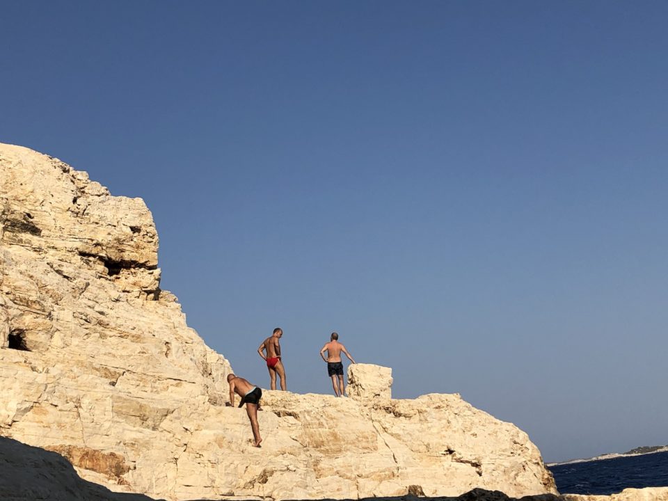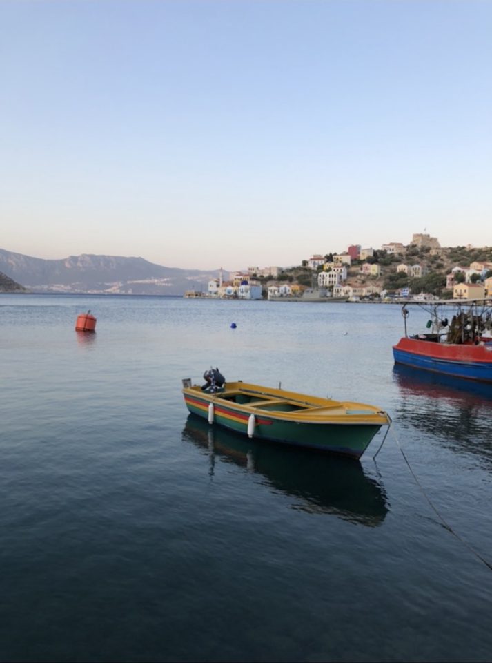 (Σημαντικό: στο Καστελλόριζο δεν υπάρχουν παραλίες, κάτι που του χαρίζει έναν ιδιότυπο εξωτισμό. Σχεδόν από οποιοδήποτε σημείο του Π μπορείς να βουτήξεις στα πεντακάθαρα γαλαζοπράσινα νερά, υπάρχουν διαθέσιμοι βατήρες αλλά και σκαλάκια που οδηγούν σε καβάτζες-κοινά μυστικά. Για όσους δεν μπορούν να κόψουν την κακή συνήθεια της άμμου, ότι κοντινότερο σε παραλία υπάρχει στο Μανδράκι. Έξτρα προορισμοί, οι Πλάκες/ το νησάκι του Αϊ Γιώργη/ η σκοτεινή σπηλιά-τουριστική ατραξιόν. Σε πάνε βαρκάρηδες που τους λένε Γιώργο-Κώστα-Σταύρο, είναι στα 50-60-70 τους (ή κάπου ανάμεσα) και λειτουργούν ως jack of all trades, λύνουν κάθε πρόβλημα από το δωμάτιο μέχρι το φαγητό σου και θυμούνται να ρωτήσουν και την Αγγλίδα με τον στομαχόπονο αν αισθάνεται καλύτερα.)
