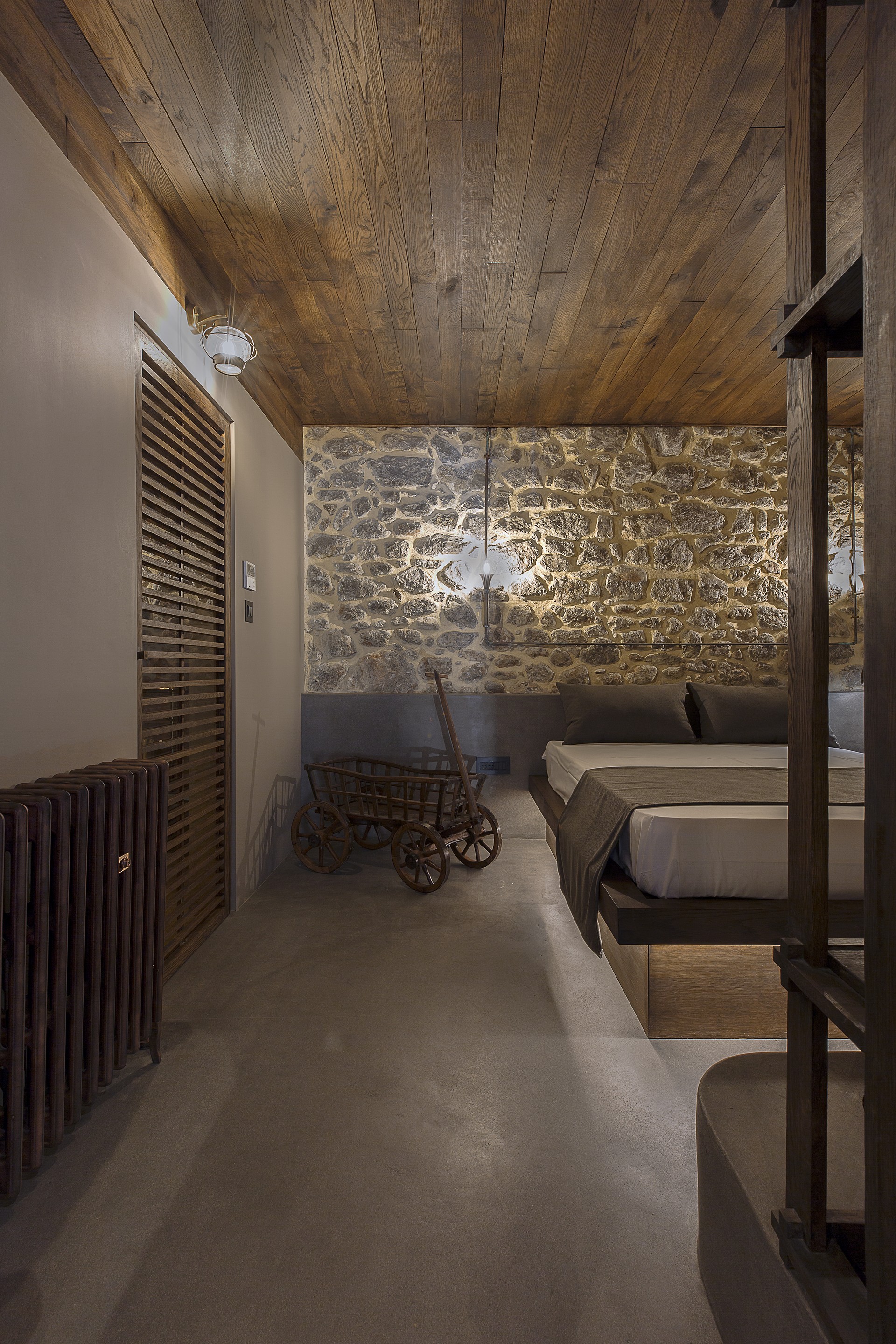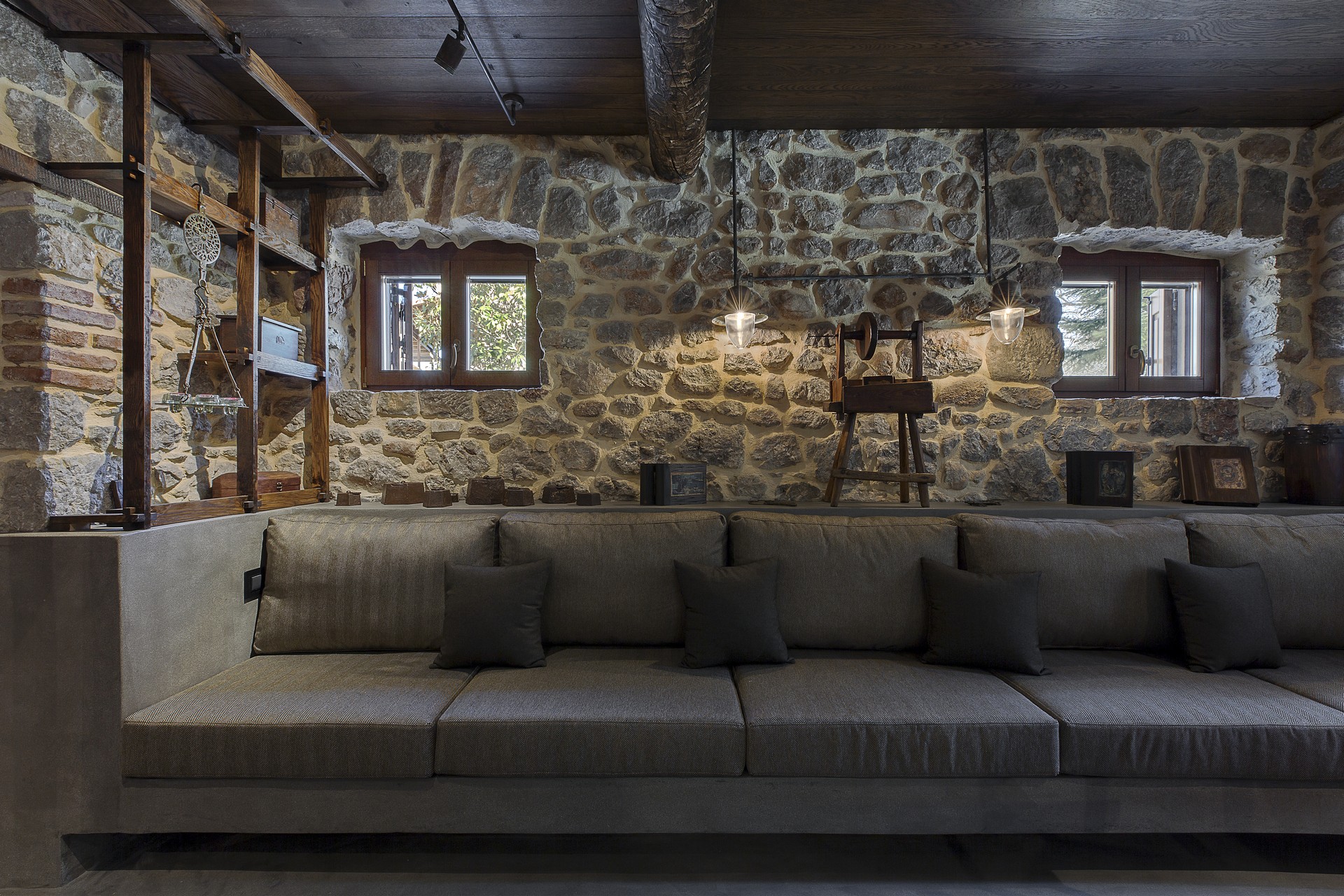 Τα φυσικά υλικά προδίδουν την ηλικία, εξιστορούν μια καταγωγή καθώς και τον τρόπο με τον οποίο σμιλεύθηκαν. Οι πατίνες μαρτυρούν το πέρασμα των ετών. Τα χρώματα και οι υφές των υλικών πλάθουν ένα ιδιαίτερο σκηνικό , μια «ετεροτοπία» -όπως χαρακτηρίζουν τον χώρο οι αρχιτέκτονες– που δίνει αφορμές για μια ξεχωριστή μορφή κατοίκησης, με όρους μνήμης και αναπόλησης.