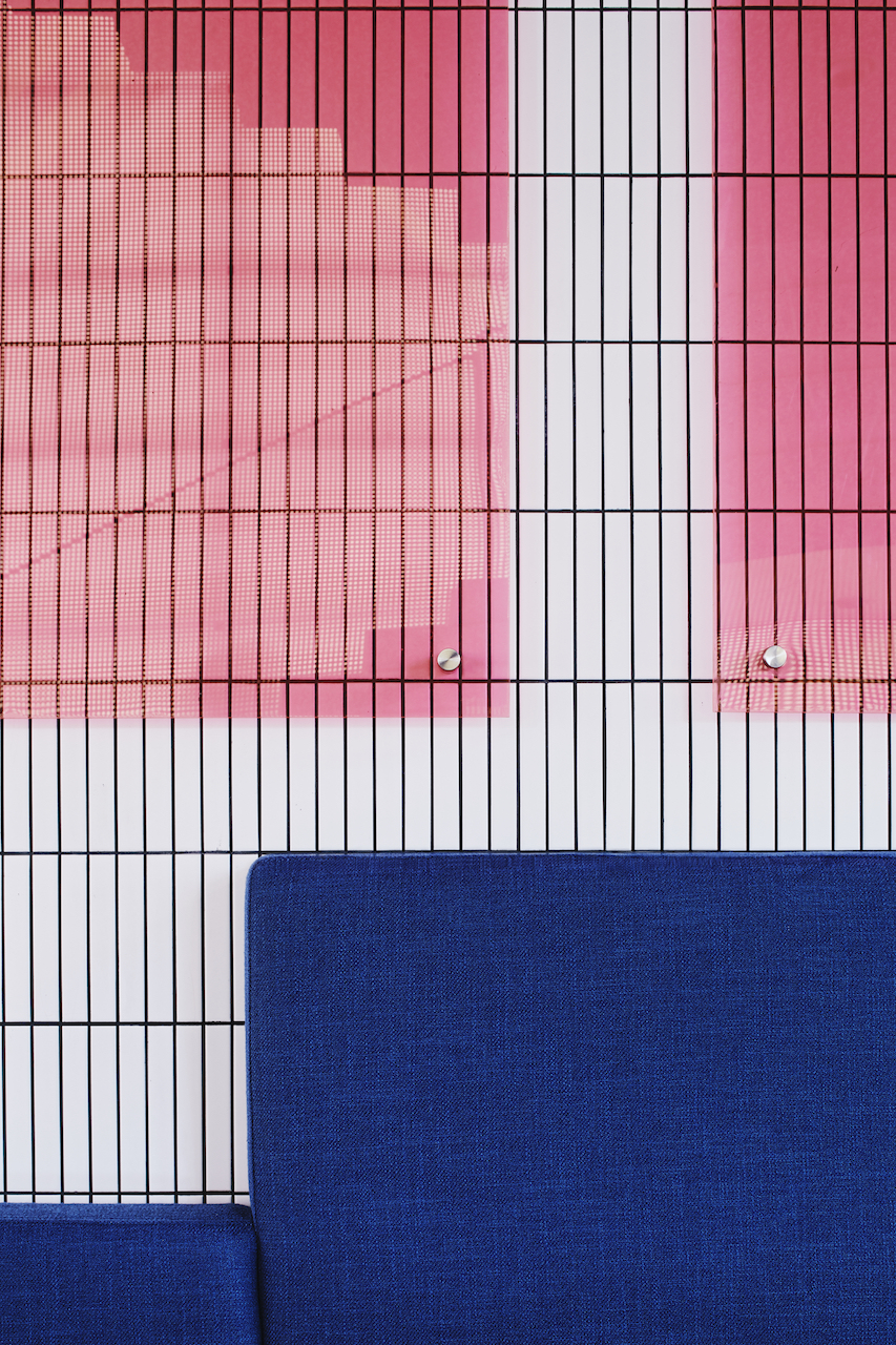 Στη σύνθεση των χώρων και των υλικών, συχνά οι τοίχοι δεν φτάνουν ως το ταβάνι, δεν υπάρχουν πόρτες που να χωρίζουν τις αίθουσες ενώ στα δωμάτια υπάρχουν παράθυρα που επιτρέπουν την επαφή του μέσα με το έξω. «Με κάποια σημεία της διακόσμησης να είναι επηρεασμένα από παιδικά παιχνίδια, υπάρχει μια απλότητα, μια αφέλεια στην επιλογή των υλικών, με γυάλινες μπίλιες μέσα στο μωσαϊκό, βαμμένες λαμαρίνες, πολύχρωμα ακρυλικά, ασημί ψηφίδες και κρουασάν από νέον. Τα WC τοποθετούνται ακριβώς στο κέντρο του δεύτερου ορόφου, μέσα σ’ένα έντονο γυαλιστερό μπλε κουτί, ένα objet trouvé στον χώρο».