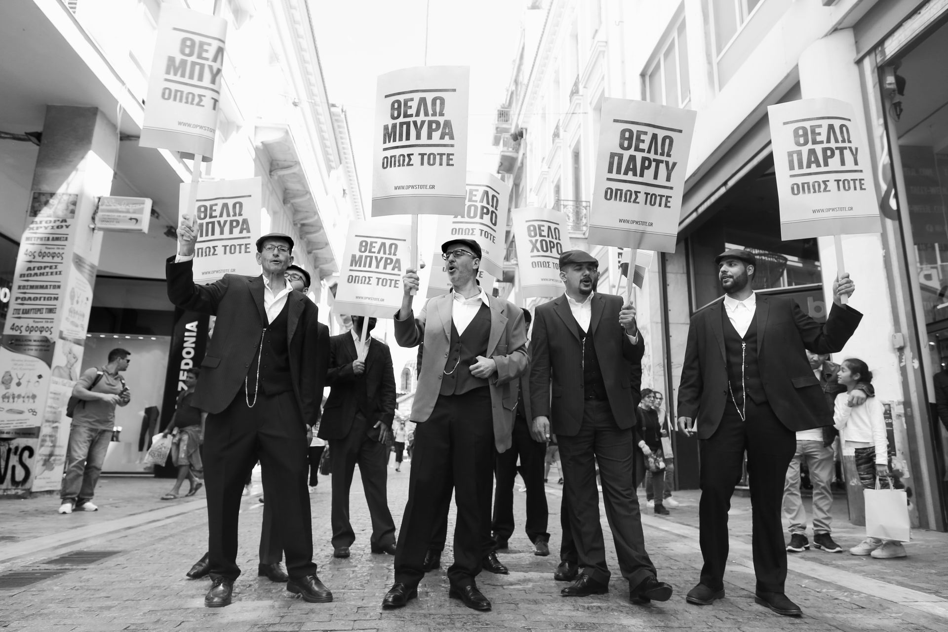 Δέκα άνδρες βγαλμένοι από άλλη εποχή, ντυμένοι με ωραία κοστούμια, τραγιάσκες και ρολόγια τσέπης να κρέμονται από τα γιλέκα τους, απαιτούσαν να γίνουν όλα #opwstote. Χορός όπως τότε. Μπύρα όπως τότε. Πάρτι όπως τότε. Πότε θα αναρωτηθείτε και θα έχετε δίκιο. Μάλλον τότε που η πόλη διασκέδαζε, έπινε και χόρευε και όλα ήταν πιο συναισθηματικά. Βέβαια αυτό το συμπέρασμα είναι δικό μου, καθώς απάντηση δεν πήρα…