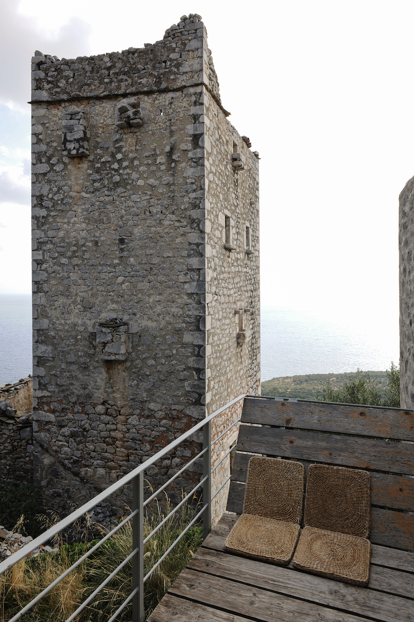 Το μανιάτικο αυτό πυργόσπιτο είναι ένα κτίριο που δημιουργήθηκε σε διαδοχικές φάσεις μέσα στο χρόνο καλύπτοντας τις χωρικές ανάγκες των διαφορετικών χρηστών του. Η πρόσφατη μετατροπή του σε χώρο φιλοξενίας με οικολογικές αρχές έχει σαν στόχο να αφήσει ένα ελαφρύ αποτύπωμα στη μακρά ιστορία του κτιρίου ανοίγοντας ένα διάλογο ανάμεσα στους ταξιδιώτες και τον τόπο. «Το έργο αυτό το αγαπάω ιδιαίτερα. Ο λόγος είναι γιατί μ’ έφερε σε άμεση επαφή με το θεμελιώδες, το ουσιώδες, καθώς η πρόκληση ήταν η δημιουργία στο πουθενά και με το τίποτα. Όταν λέω πουθενά εννοώ σ’ αυτόν τον ερημικό δύσβατο τόπο, όπου τίποτα δεν παρέχεται, ούτε φτάνει μέχρι εκεί· ούτε καν το νερό για την κατασκευή. Η ανυπαρξία των σύγχρονων υποδομών και η παραδοσιακή εστίαση της Μάνης στο απολύτως απαραίτητο λόγω της ανέχειας του τόπου μας οδήγησε στην οικολογική αντιμετώπιση και υλοποίηση αυτού του έργου», όπως λέει η αρχιτέκτονας Έλενα Ζερβουδάκη.