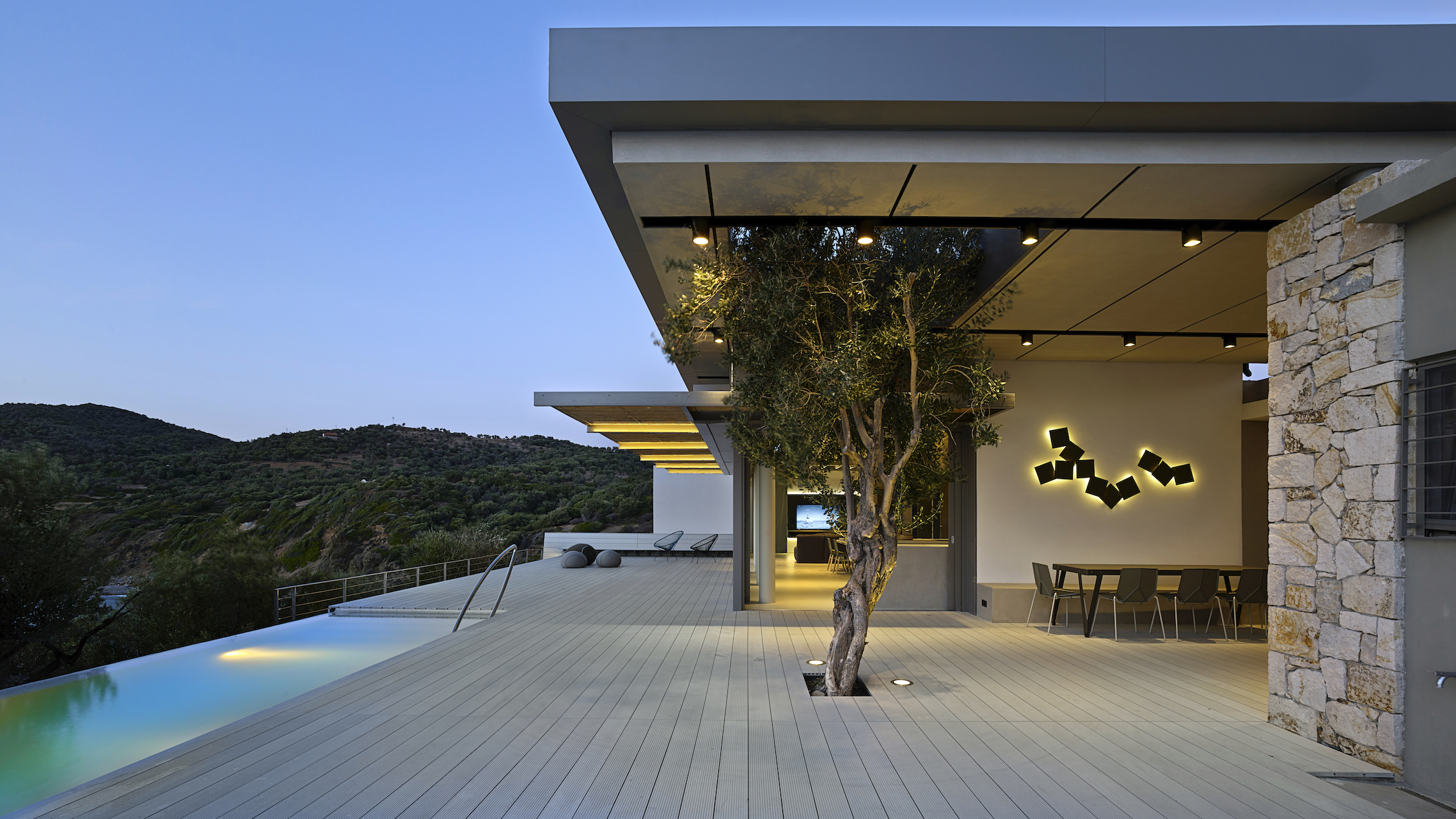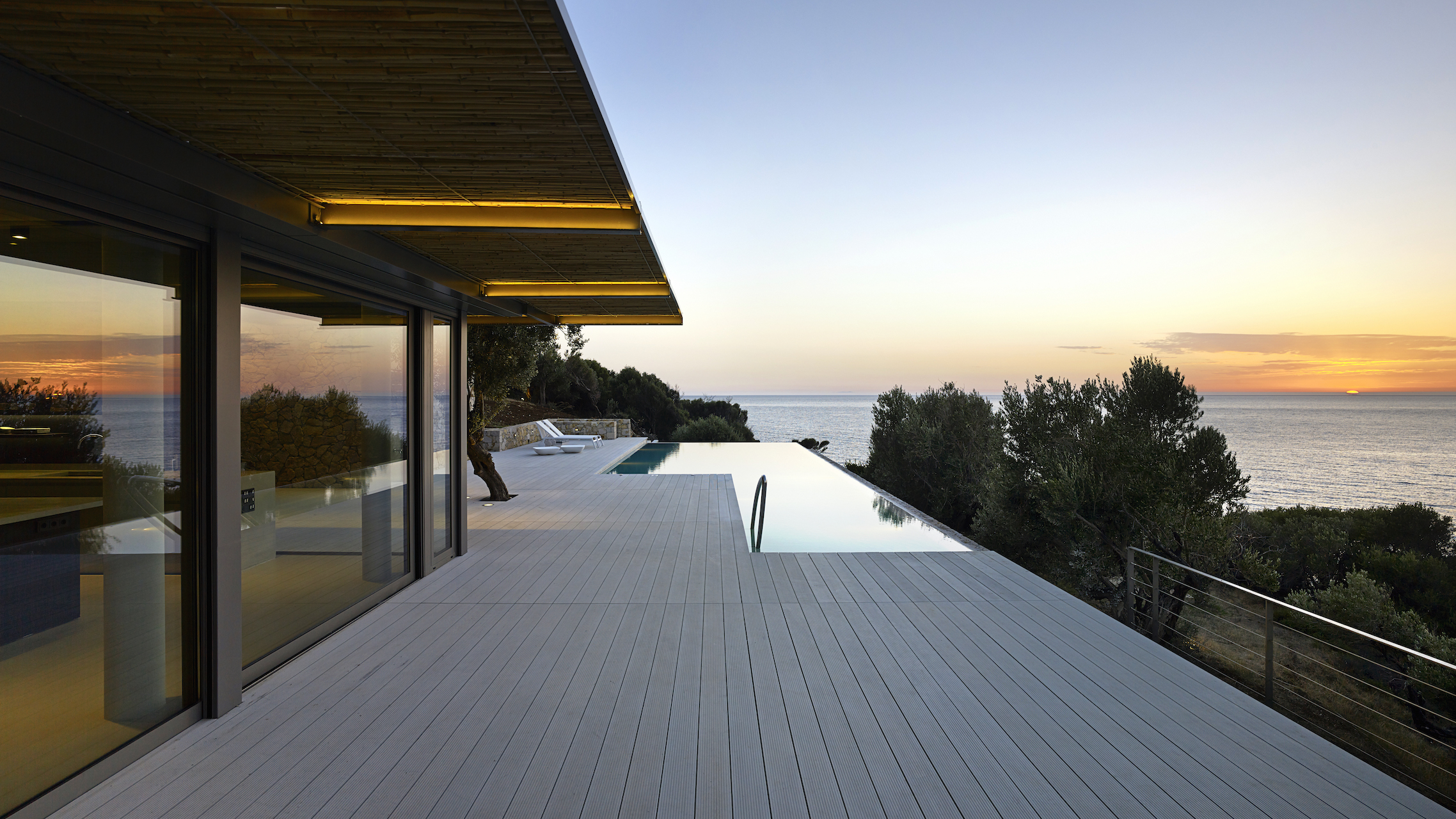«Οι συνεπίπεδοι εξωτερικοί και εσωτερικοί χώροι παρέχουν την αίσθηση της συνέχειας και της ροής δίνοντας πρόσβαση σε άτομα με ειδικές ανάγκες τα οποία μπορούν να φιλοξενηθούν σε όλους τους χώρους. Η πισίνα δημιουργήθηκε ώστε να μπορεί να εξυπηρετήσει άτομα με δυσκολία πρόσβασης στη θάλασσα. Οι εξωτερικοί χώροι είναι κατάλληλα διαμορφωμένοι ώστε να υπάρχει αυτονομία από τους εσωτερικούς χώρους για την εξυπηρέτηση των ιδιοκτητών και των επισκεπτών τους, με υπαίθρια κουζίνα, λαχανόκηπο, χώρους καθιστικού, φαγητού και υγιεινής και υποδομή για υπαίθριες προβολές σινεμά».