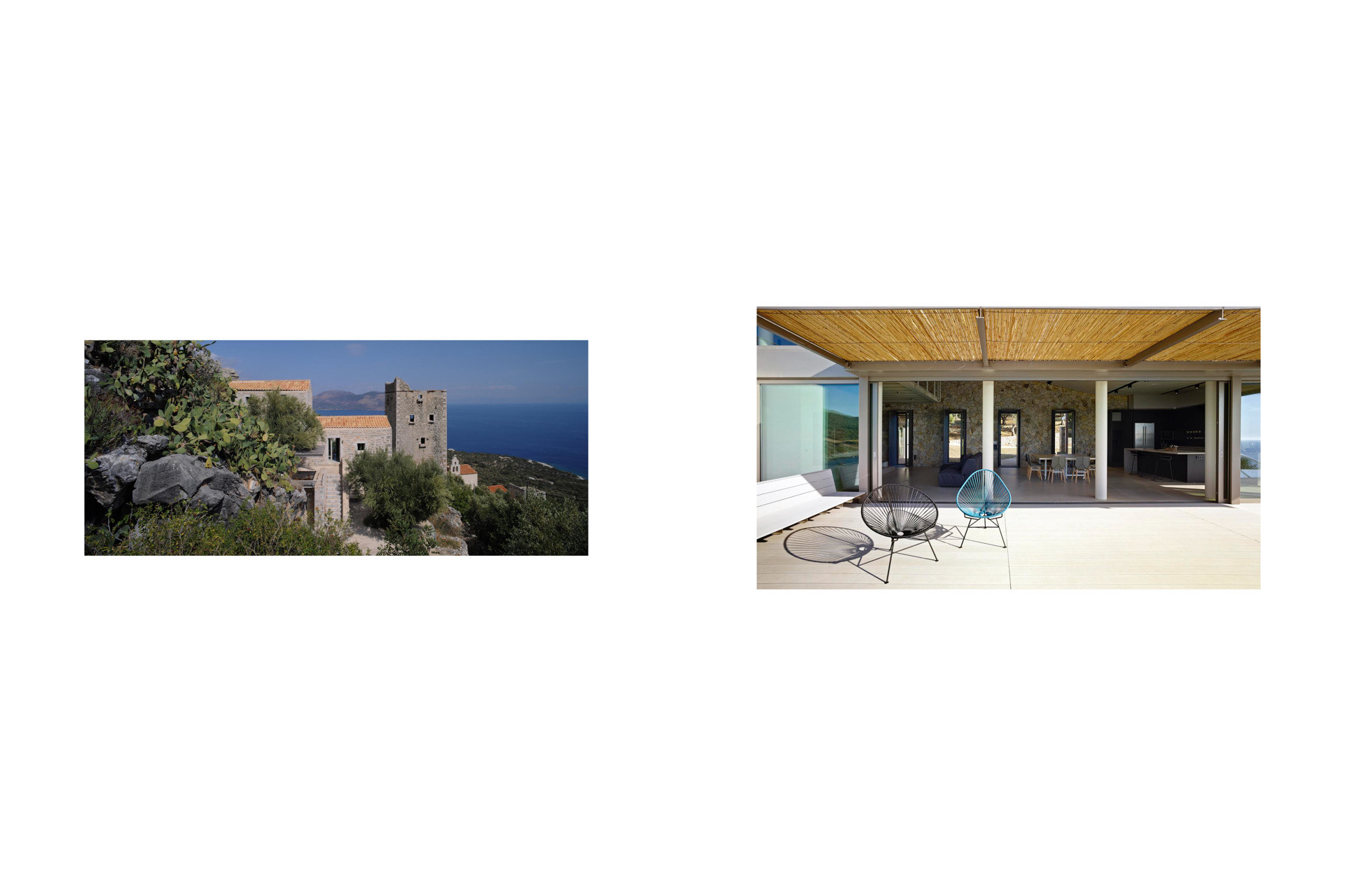 «Και τα τρία επίπεδα της κατοικίας είναι μονόχωρα εξασφαλίζοντας με την κατάλληλη τοποθέτηση των ανοιγμάτων διαμπερότητα και σωστό αερισμό κατά τη διάρκεια του ζεστού Μανιάτικου καλοκαιριού. Δημιουργείται είτε ένας ενιαίος χώρος φιλοξενίας, είτε δύο αυτόνομες μονάδες. Κάθε επίπεδο έχει ανεξάρτητη πρόσβαση στους εξωτερικούς χώρους που διαμορφώθηκαν ο καθένας ξεχωριστά σύμφωνα με τον ηλιασμό και το φυσικό ανάγλυφο του σημείου».