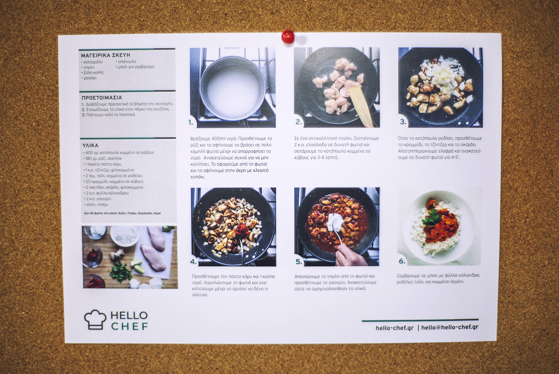 Το Hello-Chef όμως, έρχεται για να βάλει και πάλι την δημιουργία στην μαγειρική σου, χωρίς να χρειαστεί να αφιερώσεις πολύ από τον χρόνο σου που πια είναι πολύτιμος. Πρόκειται για ένα meal-kit, ένα κουτί δηλαδή που έχει μέσα όλα τα υλικά που χρειάζεσαι για να φτιάξεις νόστιμα και υγιεινά πιάτα για εσένα και την οικογένειά σου, το οποίο έρχεται κατευθείαν στην πόρτα του σπιτιού σου. Μια πρωτοποριακή και δημιουργική λύση που γεμίζει την καθημερινότητα με υγιεινά, εύκολα και απολαυστικά γεύματα και που στο εξωτερικό έχει ήδη αποκτήσει φανατικούς θαυμαστές.