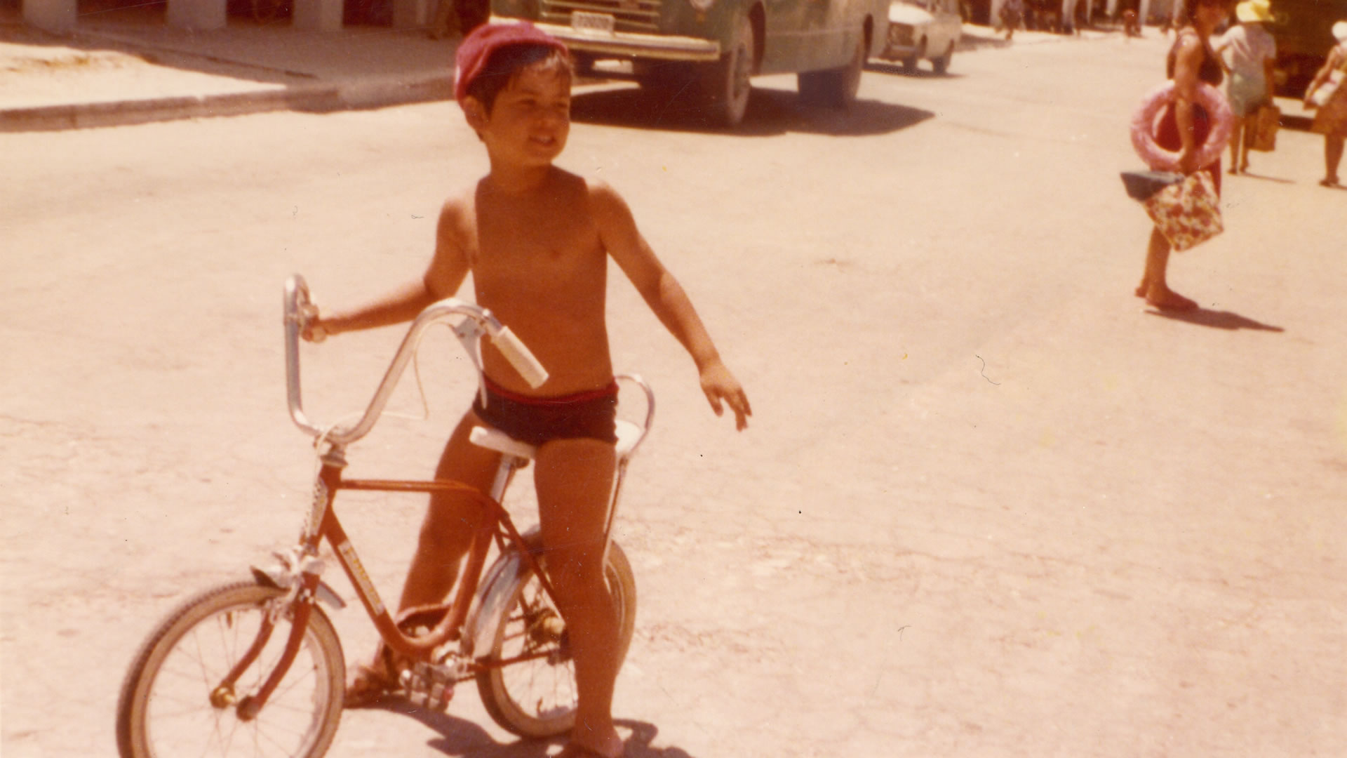 ποδήλατο: μια αλληλουχία από ποδήλατα για την ακρίβεια – σπαστά, τύπου BMX,τύπου τσόπερ, αγωνιστικά – φαντασιώσεις συμμορίας και φαγωμένα γόνατα με πληγές που επουλώνονται ως δια μαγείας.