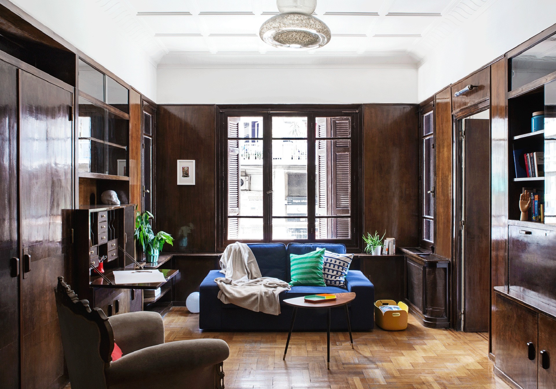 Η πολυκατοικία, εποχής μεσοπολέμου, ήταν κάποτε πολυτελής, τώρα ταλαιπωρημένη. Παρά την εγκατάλειψη, ο δυνατός χαρακτήρας του διαμερίσματος ήταν αμέσως εμφανής. Παρκέ με γεωμετρικά σχήματα, καφασωτά ταβάνια, παράθυρα με βιτρό και το πιο εντυπωσιακό: το κεντρικό δωμάτιο που ήταν ντυμένο από πάνω ως κάτω με εντοιχισμένα ντουλάπια και ράφια όλων των ειδών, καμωμένα από σκουρόχρωμο γυαλιστερό ξύλο, σίγουρα συνομήλικα με το κτίριο. Ακουμπισμένα στο πλάι υπήρχαν διάφορα καδραρισμένα πορτρέτα γνωστής αστρολόγου του παρελθόντος, που ήταν η προηγούμενη ιδιοκτήτρια.