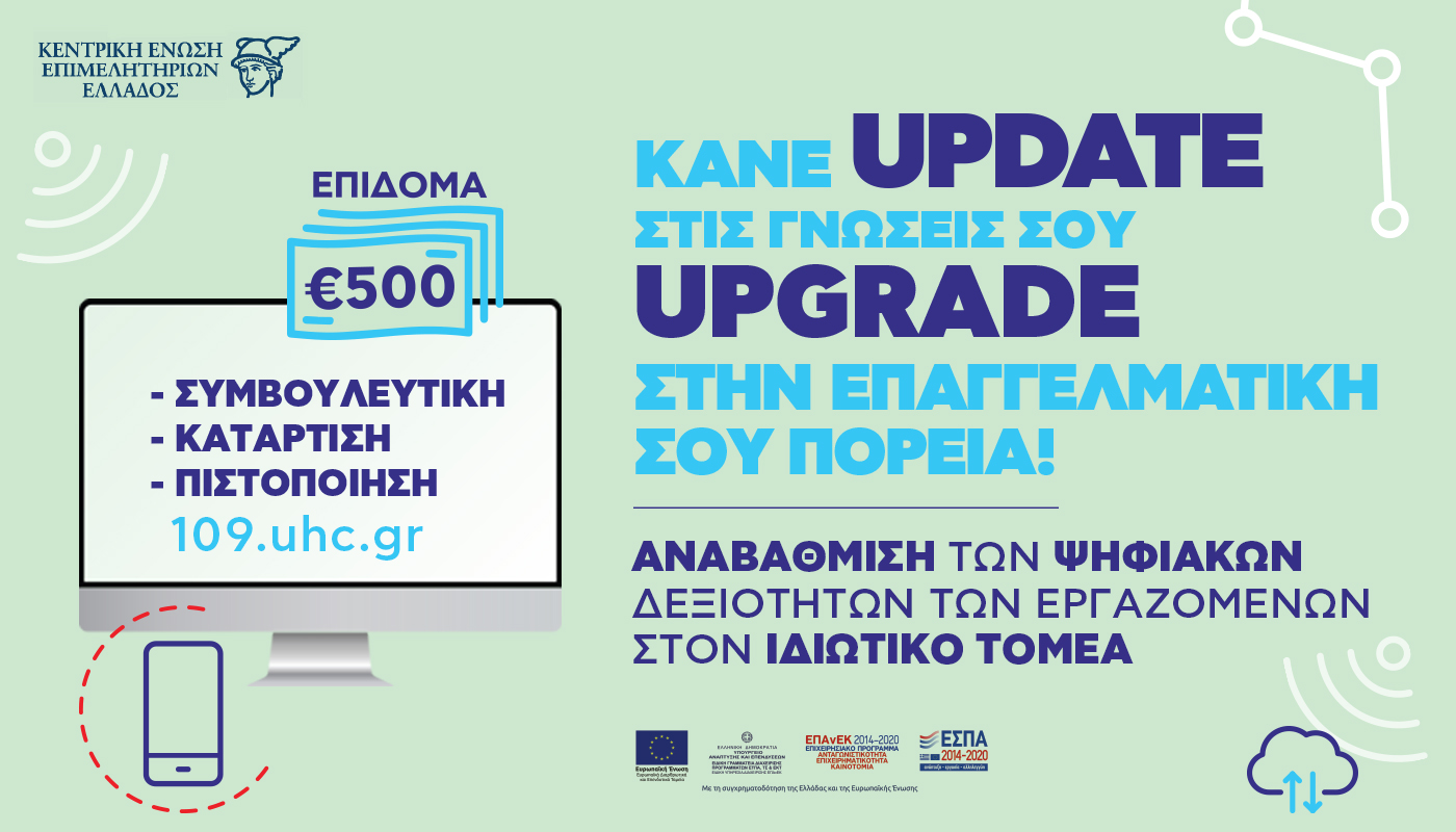 Η δράση υλοποιείται από την Κεντρική Ένωση Επιμελητηρίων Ελλάδος (Κ.Ε.Ε.Ε.), στο πλαίσιο του Επιχειρησιακού Προγράμματος «Ανταγωνιστικότητα, Επιχειρηματικότητα και Καινοτομία 2014 – 2020».
