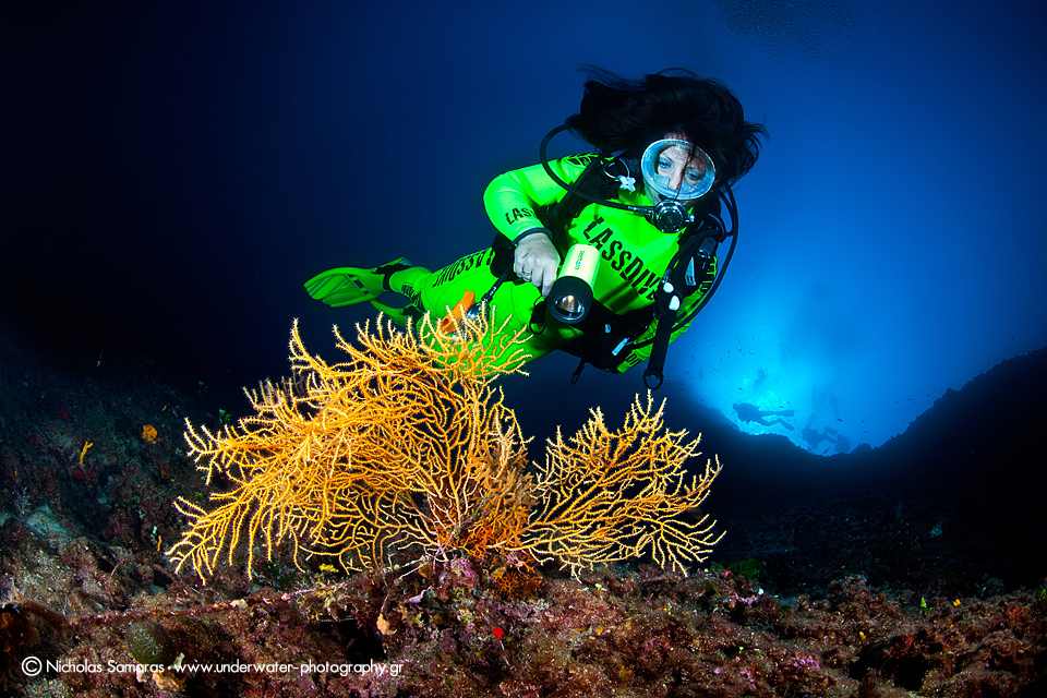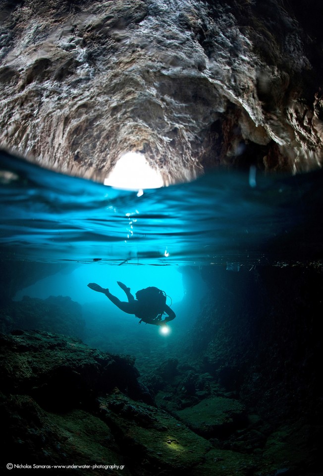 “Εξερεύνηση”, Σπηλιές – Παγασητικός κόλπος. Διακριθείσα φωτογραφία στον διεθνή διαγωνισμό υποβρύχιας φωτογραφίας του Αμερικανικού περιοδικού Scuba Diving. Grand Prize Winner 2012.