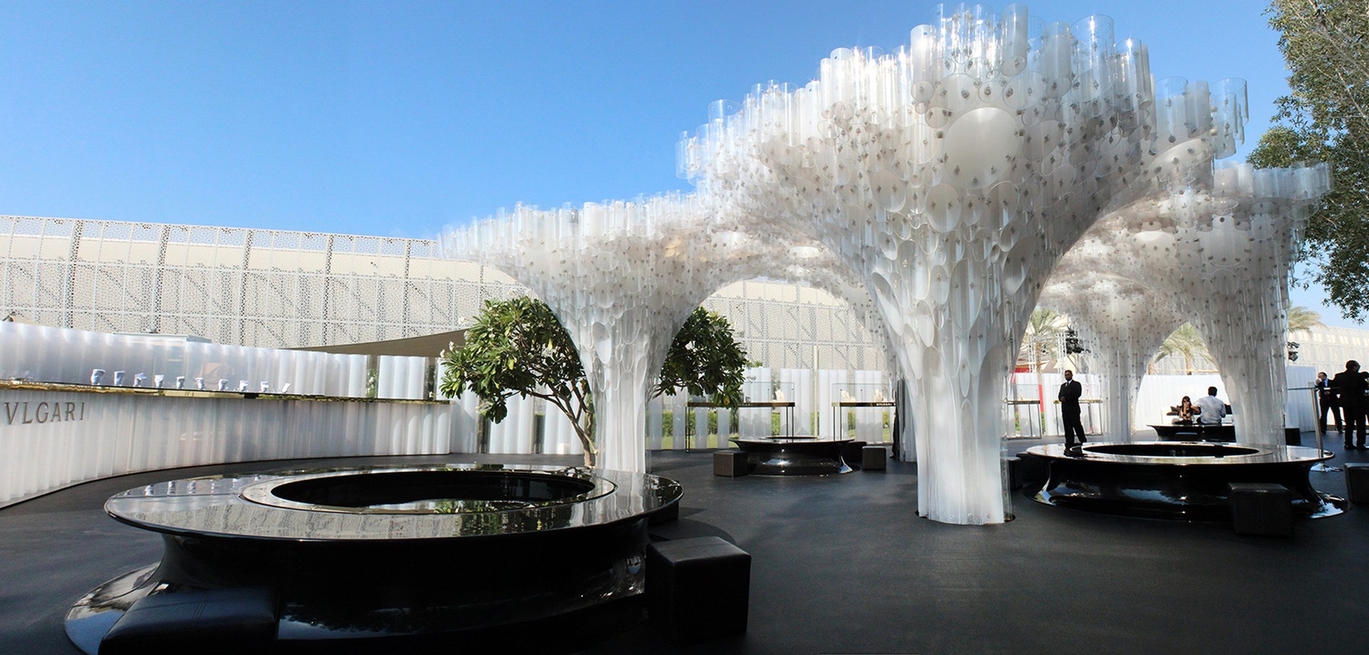 Πώς προέκυψαν οι συνεργασίες σας με τον οίκο Bulgari για το σχεδιασμό των pop up περιπτέρων στο Dubai και το Abu Dhabi Art Fair; Μέσα από την επαφή μας με τους καλλιτεχνικούς επιμελητές της εταιρίας οι οποίοι δεν φοβήθηκαν να δοκιμάσουν και να ρισκάρουν με ένα νέο γραφείο το οποίο μέχρι τότε είχε να επιδείξει τις αρχιτεκτονικές του ιδέες μόνο πάνω σε χαρτί. Έπειτα η εμπιστοσύνη χτίστηκε σιγά σιγά έχοντας πια ολοκληρώσει 9 concept designs με τα τέσσερα από αυτά υλοποιημένα.