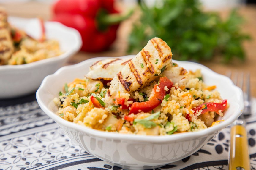 Όπως και με τα ζυμαρικά που είδαμε πιο πάνω, μπορείς να ανακατέψεις το ρύζι, το κους κους ή την κινόα μαζί με ψιλοκομμένα λαχανικά, όσπρια, μυρωδικά, ξηρούς καρπούς και αποξηραμένα φρούτα (γιατί όχι;) και να τα περιχύσεις με ελαιόλαδο και κάτι ξινό όπως λεμόνι ή ξύδι. Αν δε, βάλεις και ένα νόστιμο τυρί, έχεις πλήρες γεύμα. Να, σαν αυτό του κους κους.