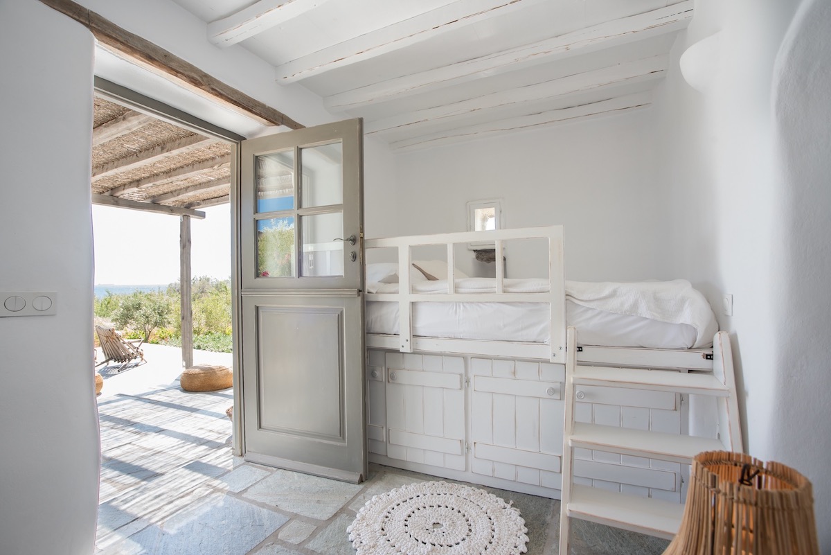 Τα υπνοδωμάτια ξεχωρίζουν για την αισθητική τους, με αποκορύφωμα το παιδικό το οποίο διαθέτει χτιστές κουκέτες.