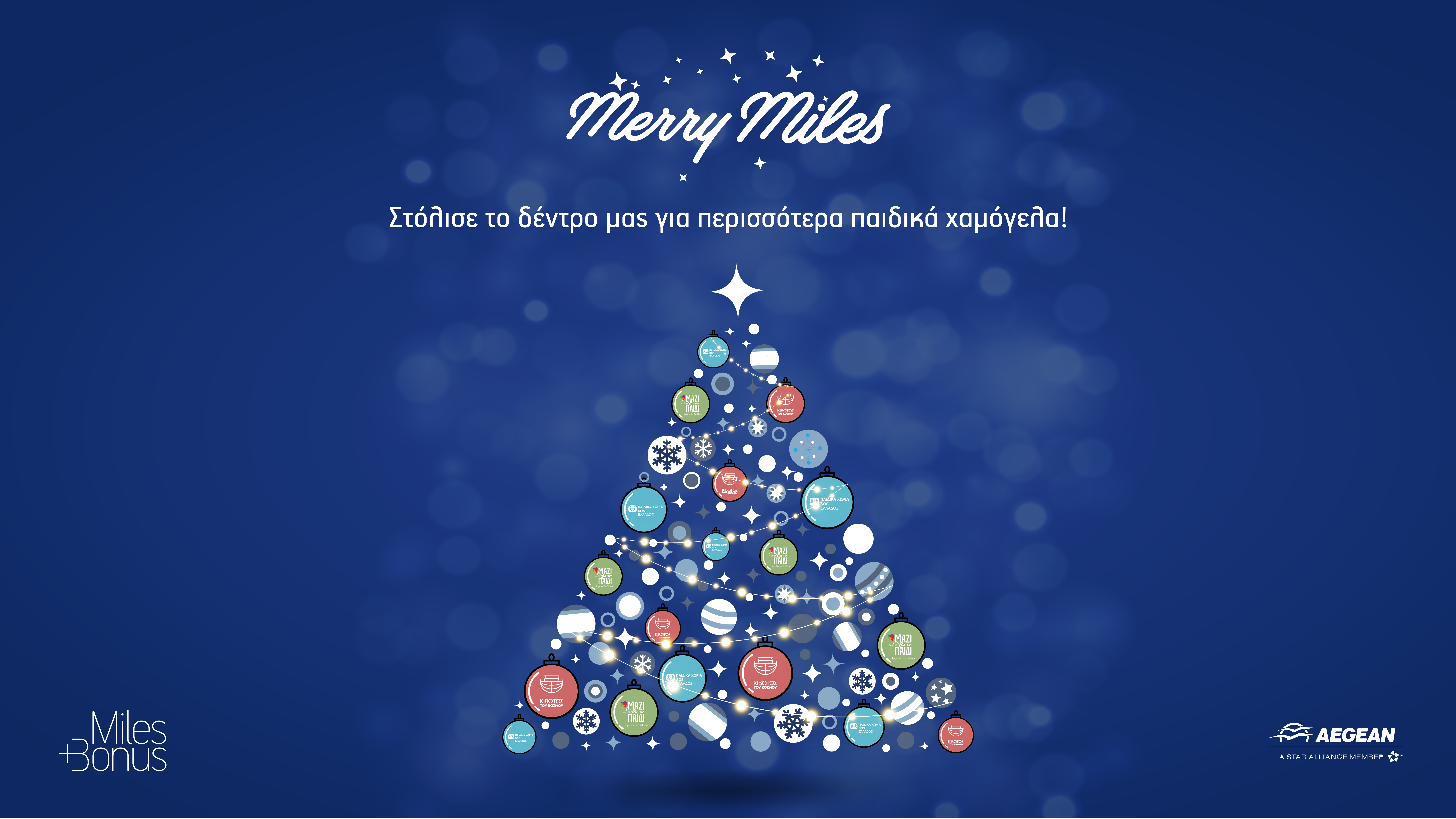 Φέτος λοιπόν το Miles+Bonus της AEGEAN μας βοηθά να ανακαλύψουμε ακριβώς αυτό – το νόημα του «δίνω», μέσα από μία πράξη προσφοράς και αγάπης. Μέσα από την ενέργεια κοινωνικής προσφοράς Merry Miles, η το Miles+Bonus της AEGEAN, μαζί με όλους μας, μοιράζεται τη χαρά και το πνεύμα των Χριστουγέννων, υποστηρίζοντας τρία κοινωφελή ιδρύματα για το παιδί.