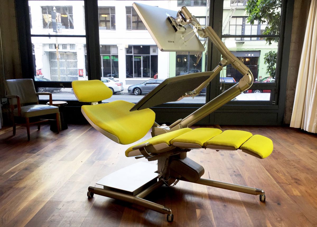 Πάμε να σκεφτούμε τώρα “out of the box”, ό,τι έκαναν δηλαδή και στην Altwork, ένα startup από τη Σονόμα της Καλιφόρνια. Οι τύποι δημιούργησαν έναν «σταθμό εργασίας» (workstation, που λένε, μιας που το «γραφείο» δεν είναι ακριβώς δόκιμο) ο οποίος είναι στην ουσία ένα σύμπλεγμα από βραχίονες που κρατούν ενωμένα οθόνη, γραφείο και καρέκλα. Το όλο «πακέτο» μπορεί να αλλάζει στάση υιοθετώντας μία από τις τέσσερις που υποστηρίζει, επιτρέποντας στον χρήστη να δουλέψει ακόμα και σχεδόν ξαπλωμένος! Μαγνήτες κρατούν στη θέση τους πληκτρολόγιο και ποντίκι επάνω στο γραφείο, την ώρα που το ανατομικό κάθισμα (περιβάλλει και το κεφάλι) εγγυάται πως όλα σας τα μέλη θα παραμένουν σταθερά και ξεκούραστα, έχοντας την απαραίτητη στήριξη.