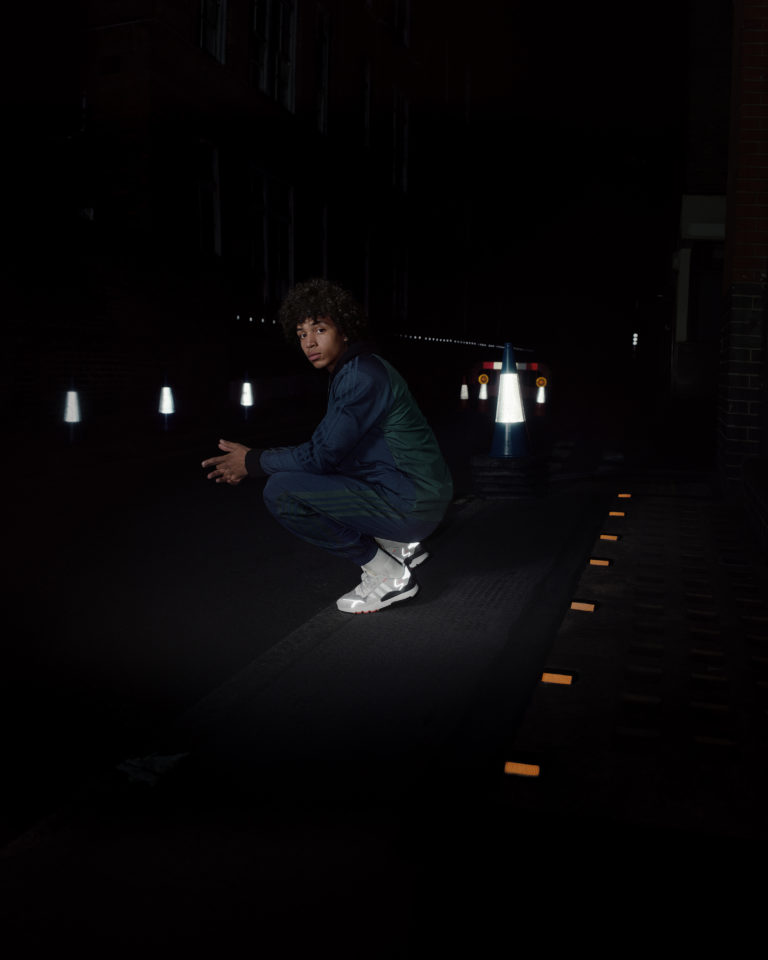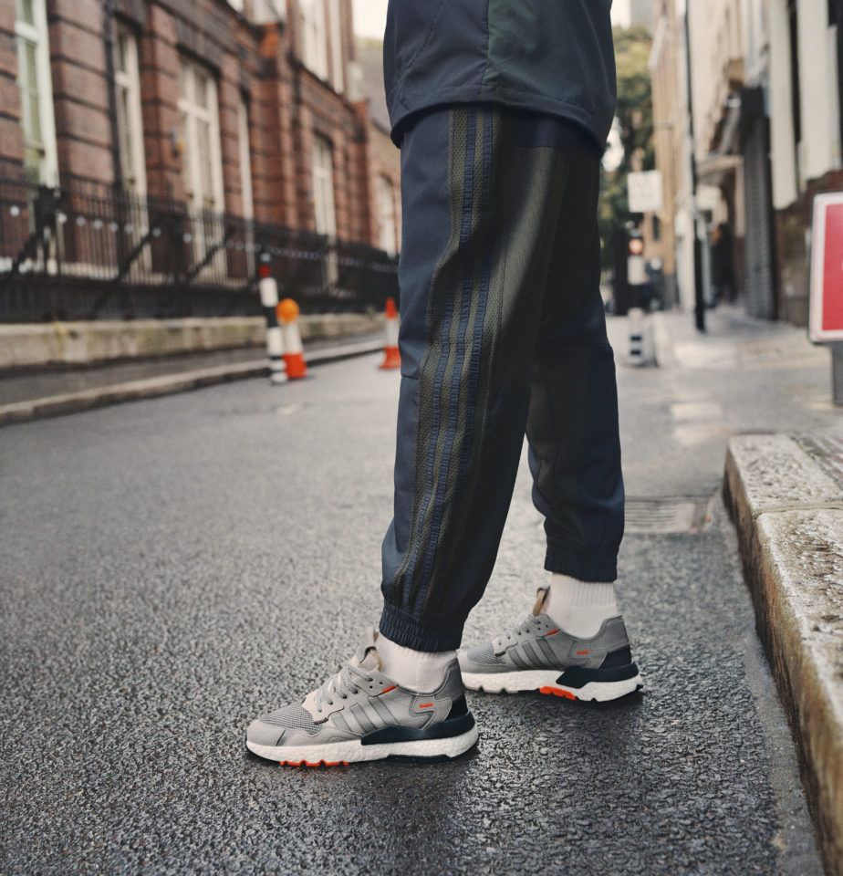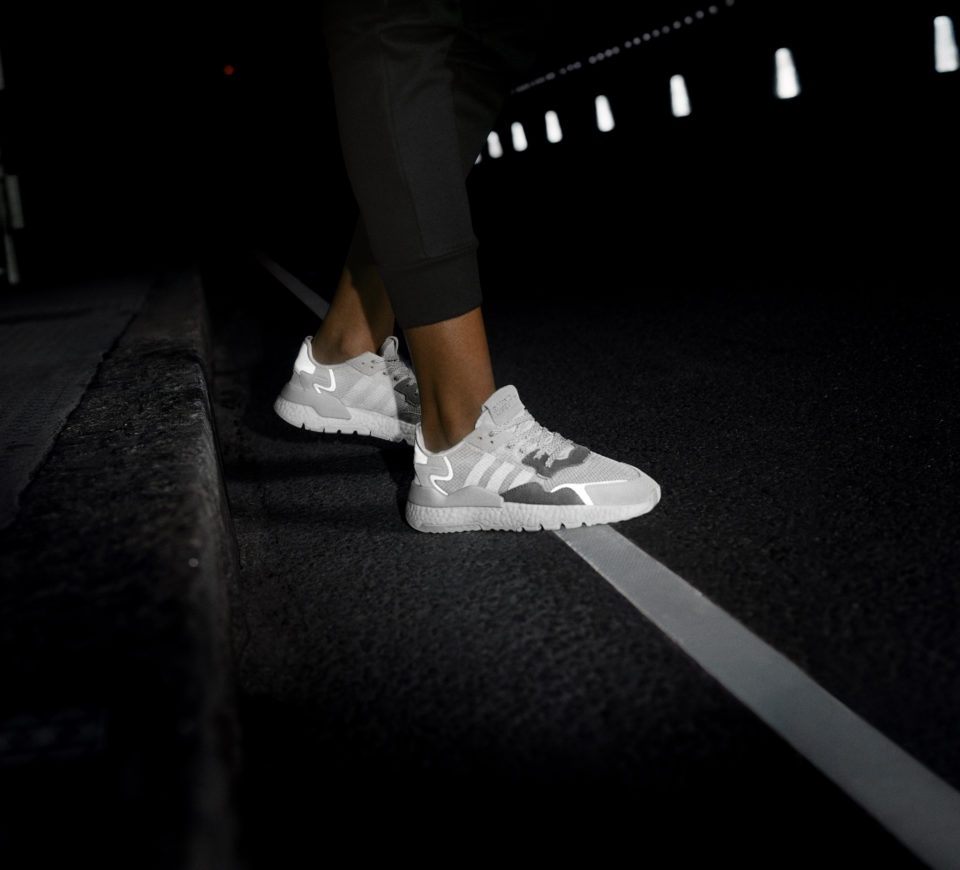 Για τις συστάσεις, το NITE JOGGER της adidas κυκλοφόρησε και πρωτοεμφανίστηκε στους δρόμους το 1979, βοηθώντας όσους κινούνταν και έτρεχαν στην πόλη τη νύχτα να είναι ορατοί.