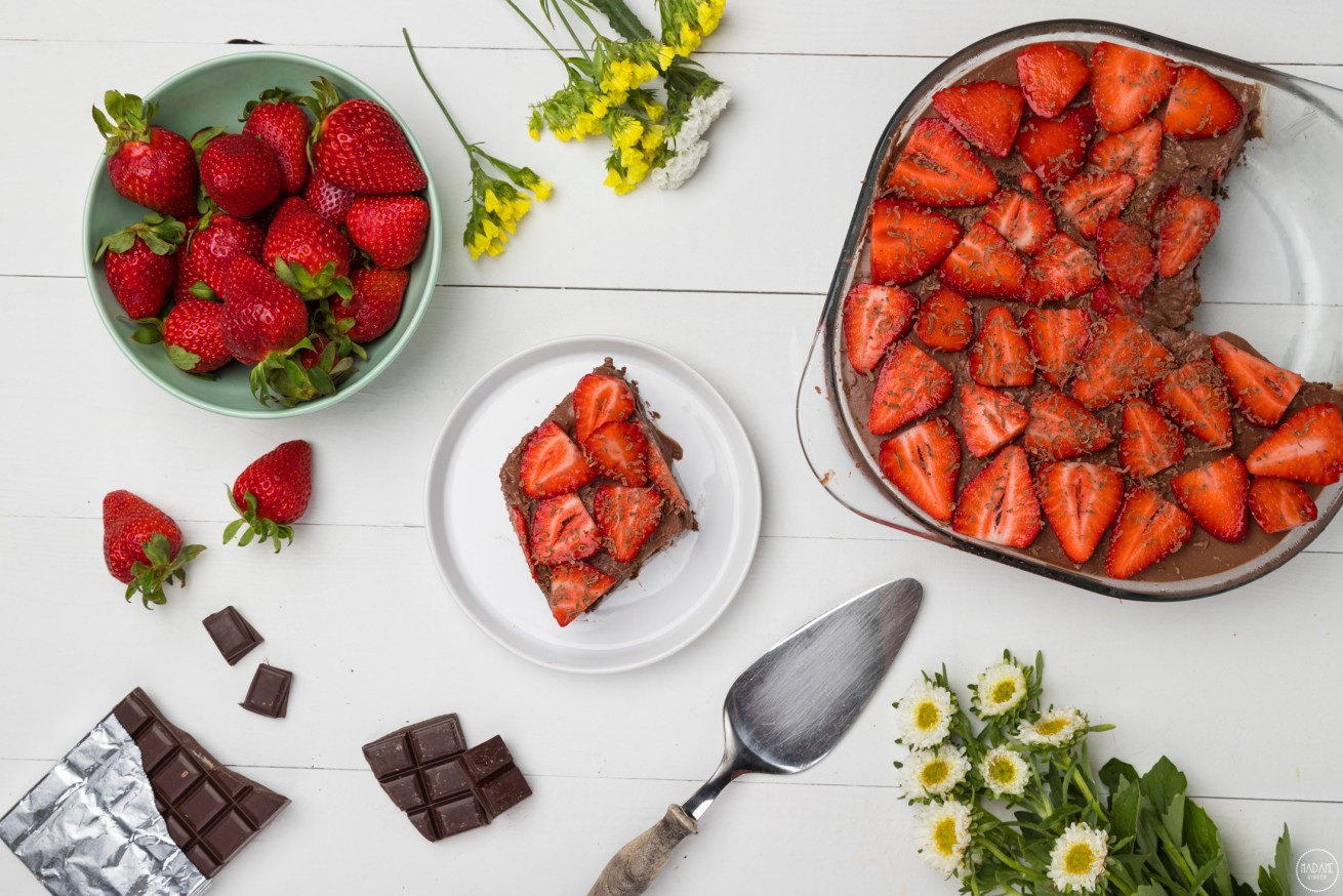 Σοκολατένιο γιαουρτογλυκό ψυγείου με φράουλες